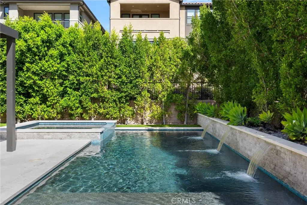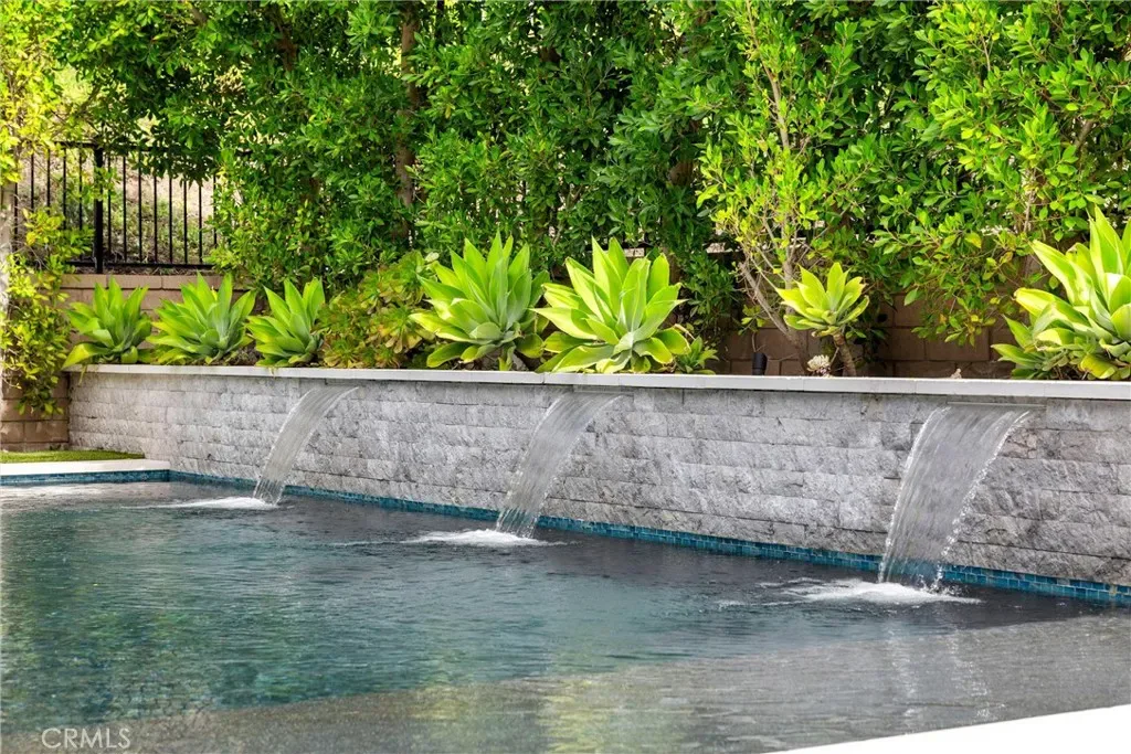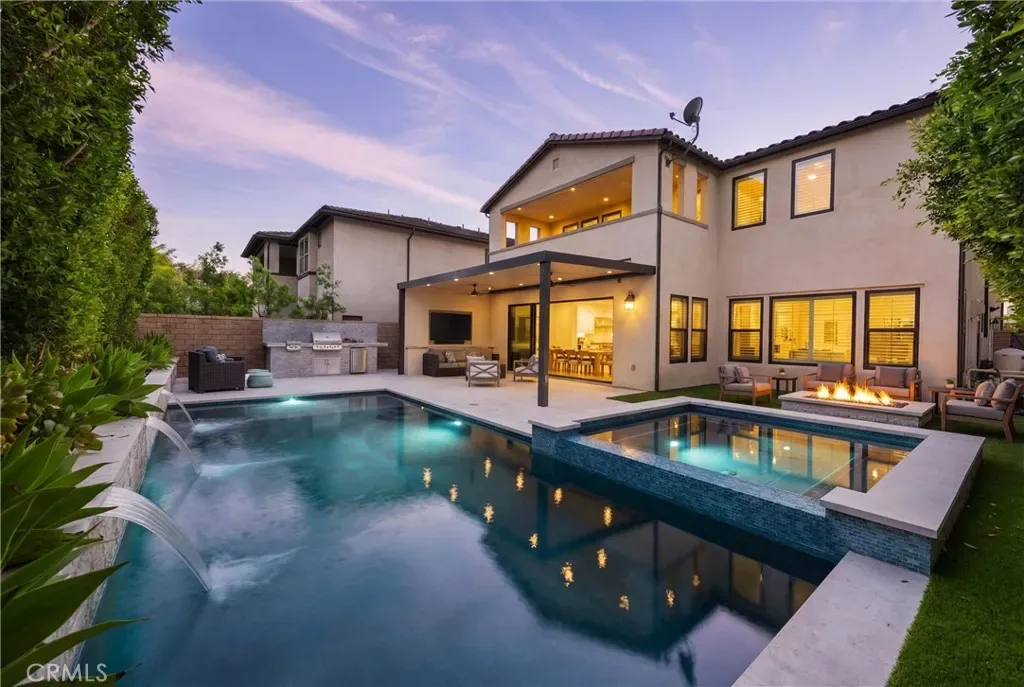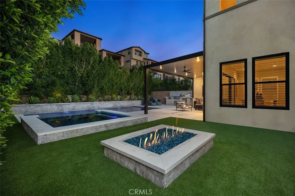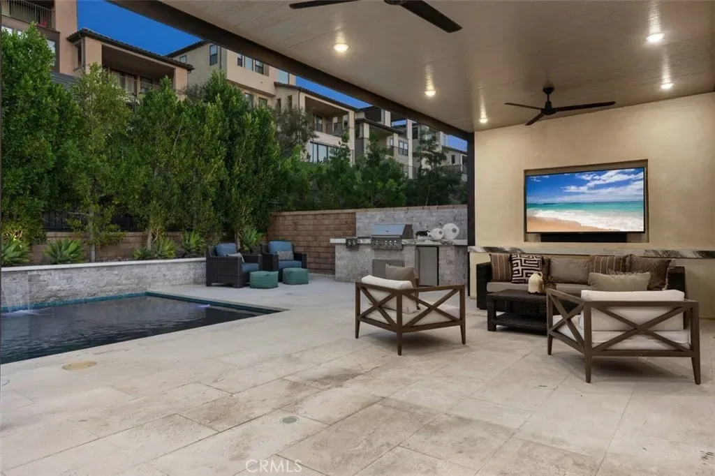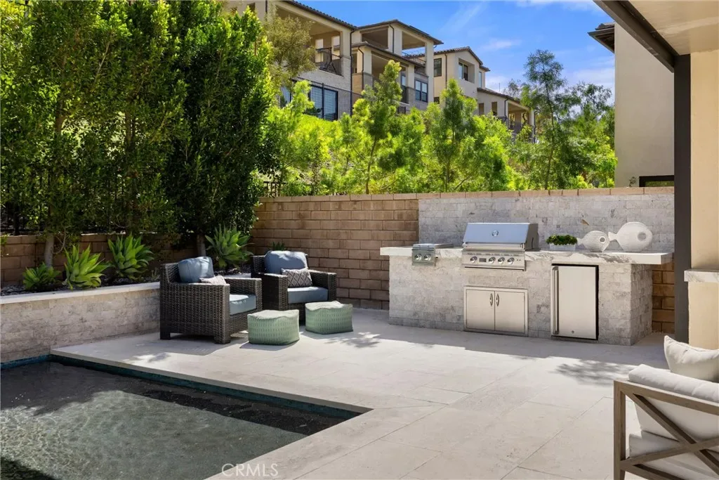 Meet the backyard of your dreams: Mini-Pebble stone pool & spa with Pentair IntelliCenter Automation system, outdoor TV with Porcelain mantle, full built-in outdoor kitchen, and limestone flooring. Lush greenery surrounds the backyard. Lounge by the water on the Baja shelf, or enjoy evening conversations around the fire pit, this backyard was made for the kind of living that feels like a getaway.