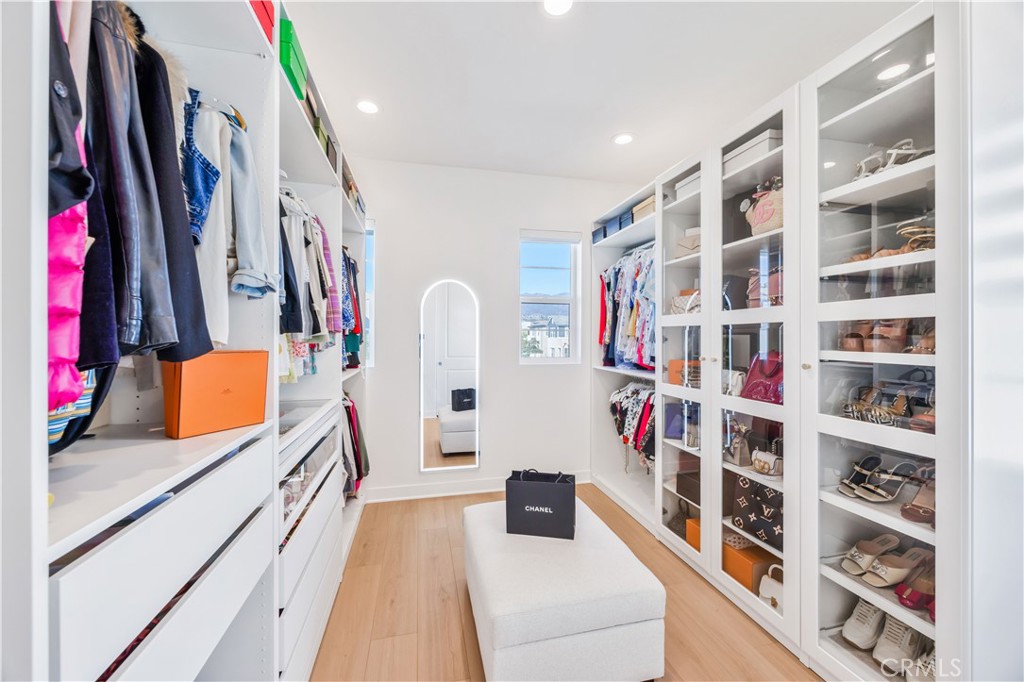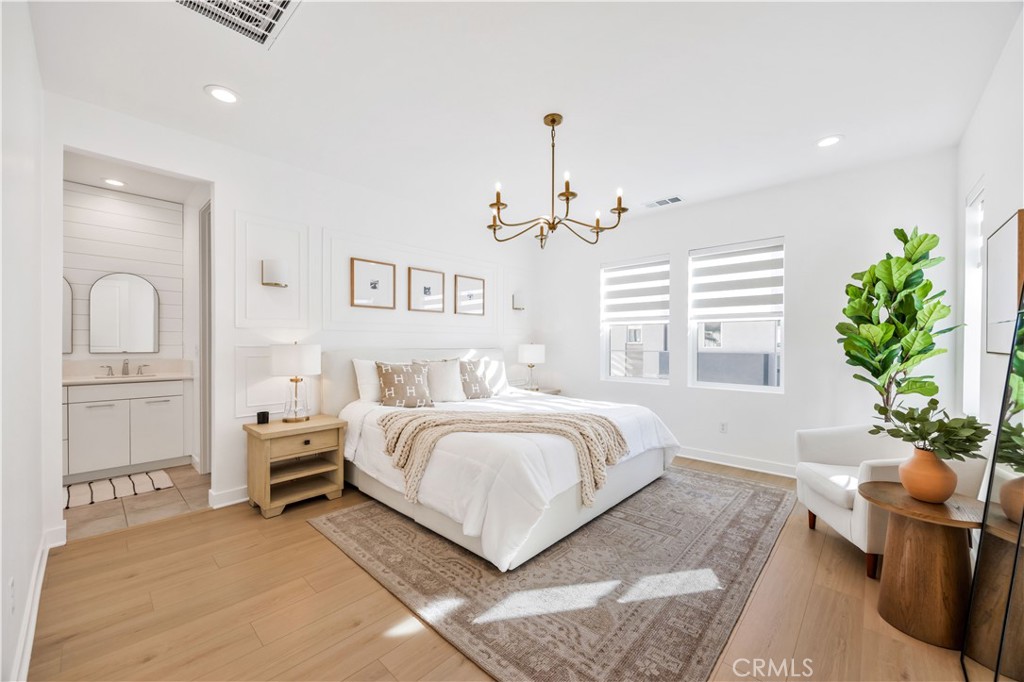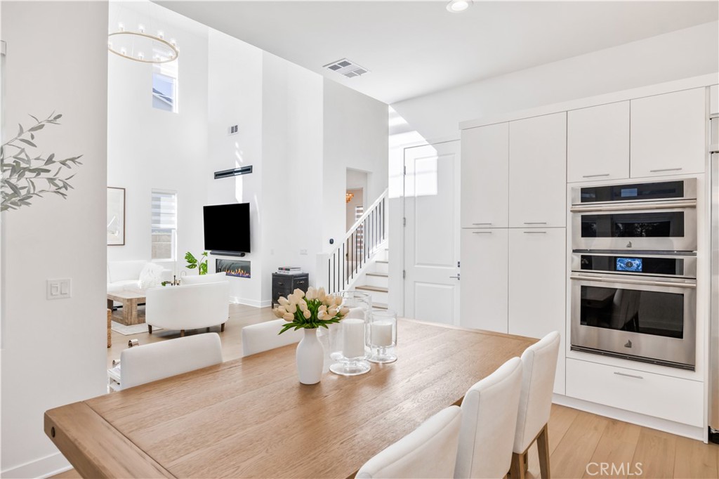 STUNNING LUXURY HOME with four bedrooms and three bathroom, located in the prestigious new Meadows community by Toll Brothers! Featuring a modern exterior, open floor plan, soaring ceilings, designer upgrades, a DOWNSTAIRS BEDROOM, FREE SOLAR POWER, and so much more. Step in from the charming front porch into a dramatic two-story foyer that flows into the great room—highlighted by towering ceilings, a wall of windows that flood the space with natural light, a sleek fireplace, and a sliding glass door leading to the beautifully landscaped backyard. The gourmet kitchen opens seamlessly to the dining and great room areas, boasting a spacious center island with breakfast bar, crisp white cabinetry offering abundant storage, premium stainless steel appliances—including a six-burner gas cooktop and built-in refrigerator—and generous counter space. Upstairs, the luxurious primary suite features an expansive walk-in closet and a spa-inspired bathroom. Two additional bedrooms share a well-appointed hallway bath with dual sinks. Enjoy resort-style community amenities such as a private clubhouse, two pools, two spas, cabanas, a cozy lounge with fireplace, outdoor BBQs, multiple parks, sports fields, and courts for basketball, pickleball, and volleyball. Miles of biking, hiking, and walking trails connect to the Serrano Creek regional trail system. All this with quick freeway access and just a short stroll to 24 Hour Fitness, Starbucks, Target, and countless dining options. This is one you don’t want to miss!
