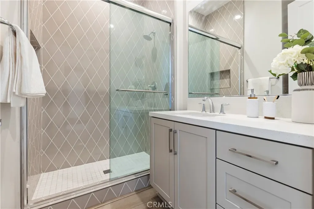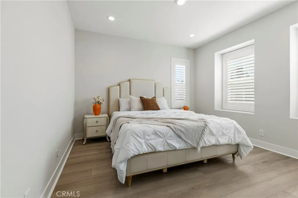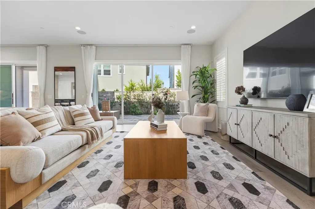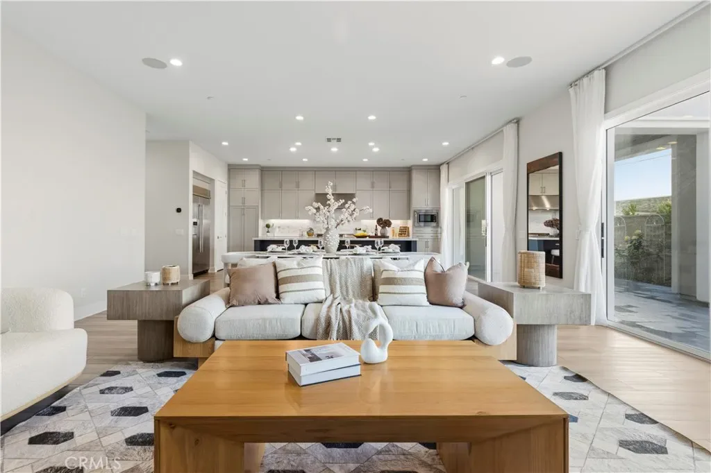 The main level features an open and inviting layout, where the spacious living and dining areas flow effortlessly into a stunning gourmet kitchen. Highlights include an oversized center island with bar seating, high-end appliances, and beautifully appointed cabinetry—perfect for both everyday living and entertaining. Two expansive sliding doors open to the backyard, creating a seamless indoor-outdoor experience ideal for gatherings. A generously sized bedroom and a fully upgraded bathroom on the first floor add both comfort and convenience.
