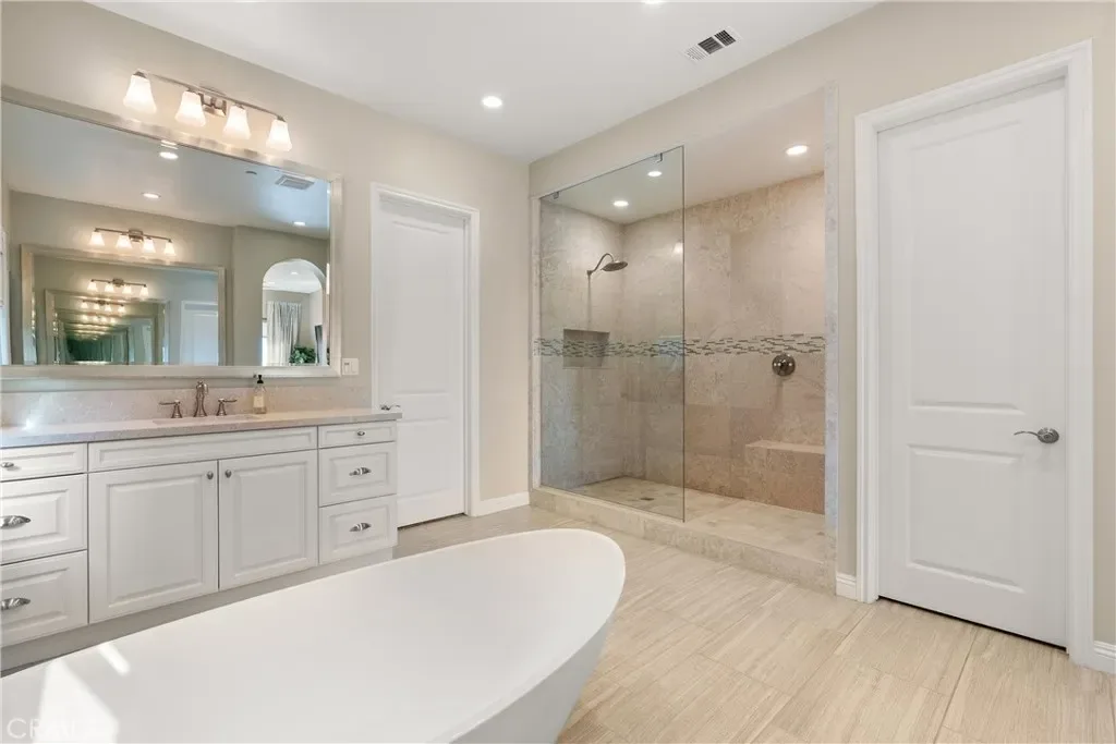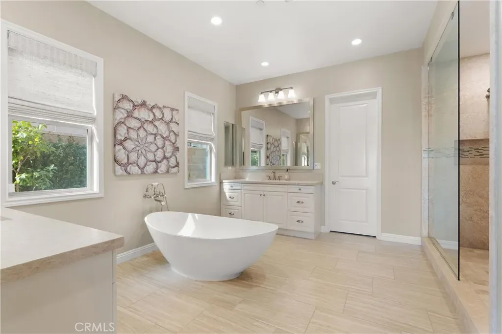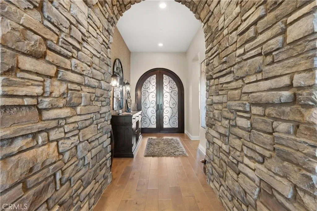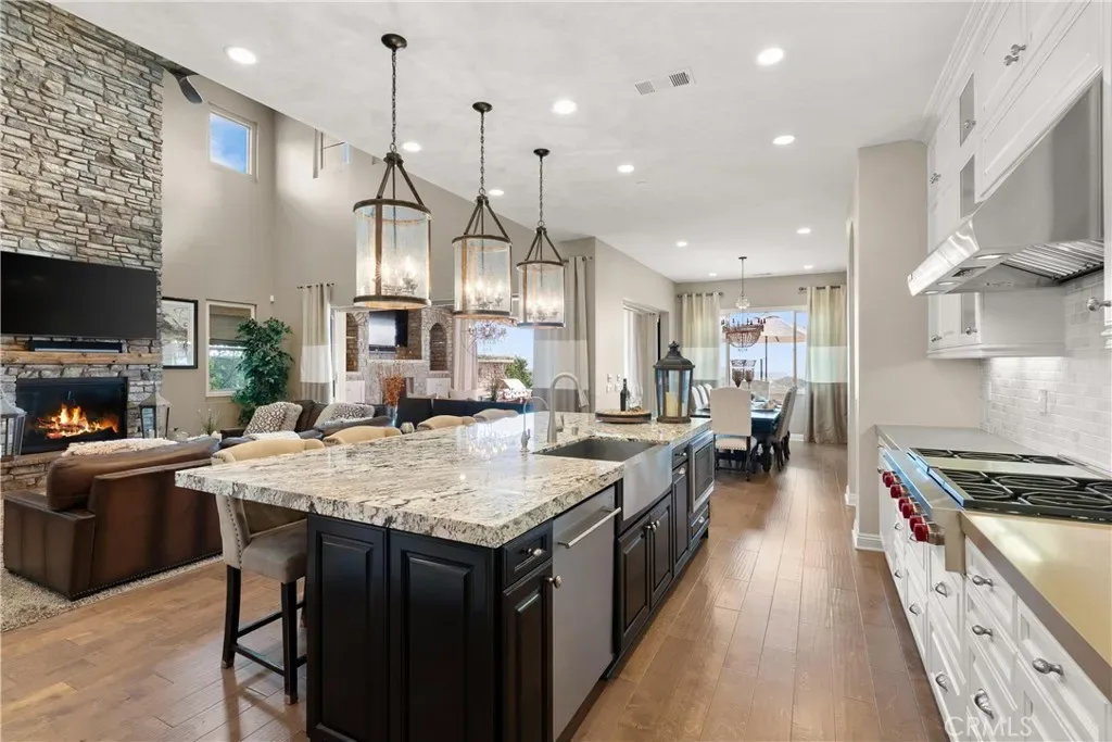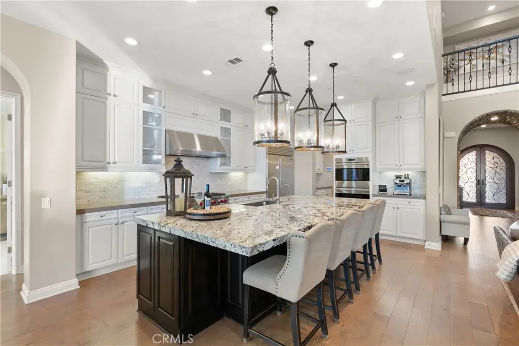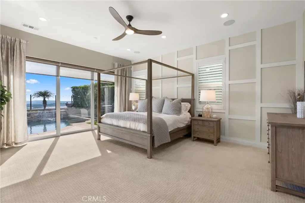Breathtaking backyard views await within the prestigious gated community of The Oaks at Portola Hills. This exceptional residence masterfully blends luxury and comfort, offering a spacious open-concept design, elevated finishes, and sweeping panoramic views that enhance everyday living. The expansive main level showcases soaring ceilings, custom lighting, and a luxurious primary suite featuring a custom millwork accent wall, spa-inspired bath with freestanding tub, dual vanities, an oversized walk-in closet, and private sliding doors leading to the pool and backyard retreat. A secondary en-suite bedroom and elegant powder room complete the main floor, ideal for guests or multigenerational living. Upstairs, you’ll find three spacious bedrooms, two baths, and a versatile loft perfect for work, study, or play. At the heart of the home, the chef’s kitchen impresses with Wolf and Sub-Zero appliances, a stunning Silver Lennon granite island, pull-out drawers, custom built-ins, and seamless flow into the main living area. Sliding glass doors open to the California Room, creating effortless indoor-outdoor living. Outside, a private resort-style backyard awaits with a custom pool, outdoor kitchen, and beautifully designed spaces for entertaining or relaxing. Thoughtful upgrades include solar panels, water softener, hardwood flooring, designer carpeting, plantation shutters, a stone-accented fireplace, upgraded staircase, flat-panel prewire, Cat 6 wiring, surround sound, satellite-ready package, prewire for charging station, custom framed mirrors, refined tile work, and the third car garage is set up as a home gym. Residents of The Oaks enjoy resort-inspired amenities including a pool, spa, clubhouse, BBQ areas, dog park, and scenic trails, all conveniently located near premier dining, shopping, and freeway access. This remarkable home truly captivates at every turn.