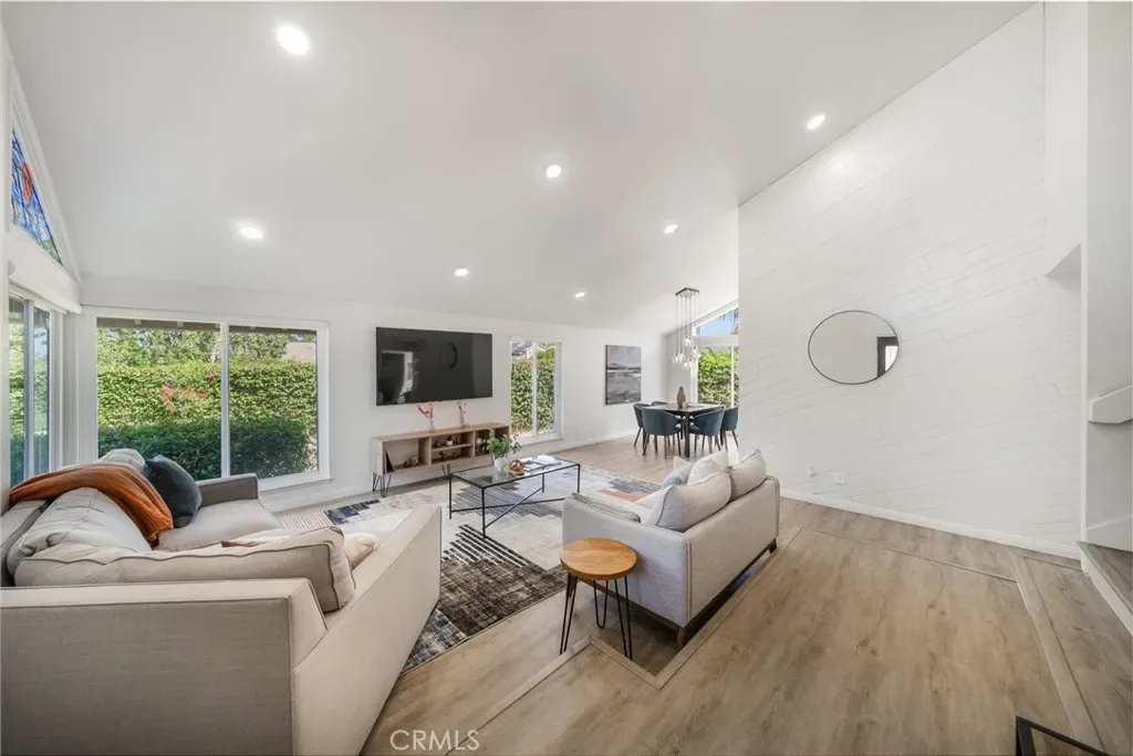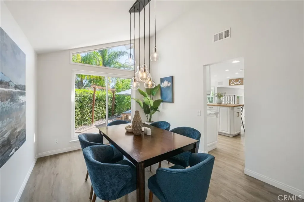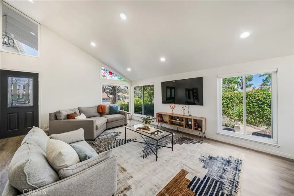 This thoughtfully remodeled two-story home is situated on an elevated 5,600 sq ft lot in the highly desirable Lake Forest Sun and Sail community, offering lake rights and access to an exceptional array of amenities. El Toro High School and La Madera Elementary are a short walk, along with Irvine Spectrum’s world-class shopping and dining just 10 minutes away — and the beach less than 20 minutes from your front door. The main level features a sun-filled foyer with vaulted ceilings and a custom tongue-and-groove accent wall, a formal living room with large windows, and a formal dining area with updated fixtures. The remodeled kitchen showcases quartz countertops, an elongated hex tile backsplash, refinished white cabinetry with gold hardware, and a butcher block center island. The adjacent family room offers a brick fireplace and French doors opening to the backyard.Upstairs, the primary suite includes two closets — a spacious walk-in and a second mirrored closet — along with an en-suite bath with dual sinks and an oversized shower. Three additional bedrooms share a full bath with a frameless glass-enclosed soaking tub and shower combo, with one secondary bedroom featuring its own walk-in closet — ideal for guests, older children, or a home office.The AC and furnace were both replaced in 2024, providing year-round comfort and efficiency with years of worry-free use ahead. The attached 3-car garage offers ample parking and storage. Additional updates completed in 2020 include luxury vinyl plank flooring throughout, interior and exterior paint, and fully redesigned front and rear landscaping.The backyard is designed for both relaxation and entertaining, featuring a built-in gas fire pit, above-ground spa, fruit trees, and raised garden beds — perfect for starting your own kitchen garden or weekend hobby farm. Community amenities include lake access, pools, spa, tennis, pickleball, gym, hiking and biking trails, and more. Located within the Saddleback Valley Unified School District.