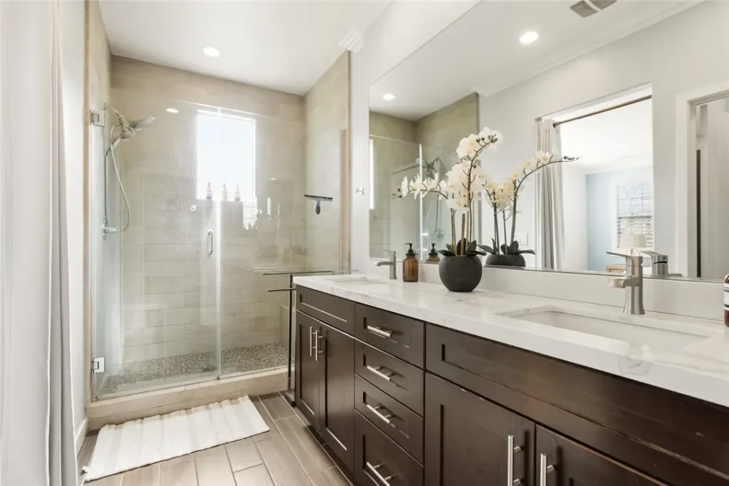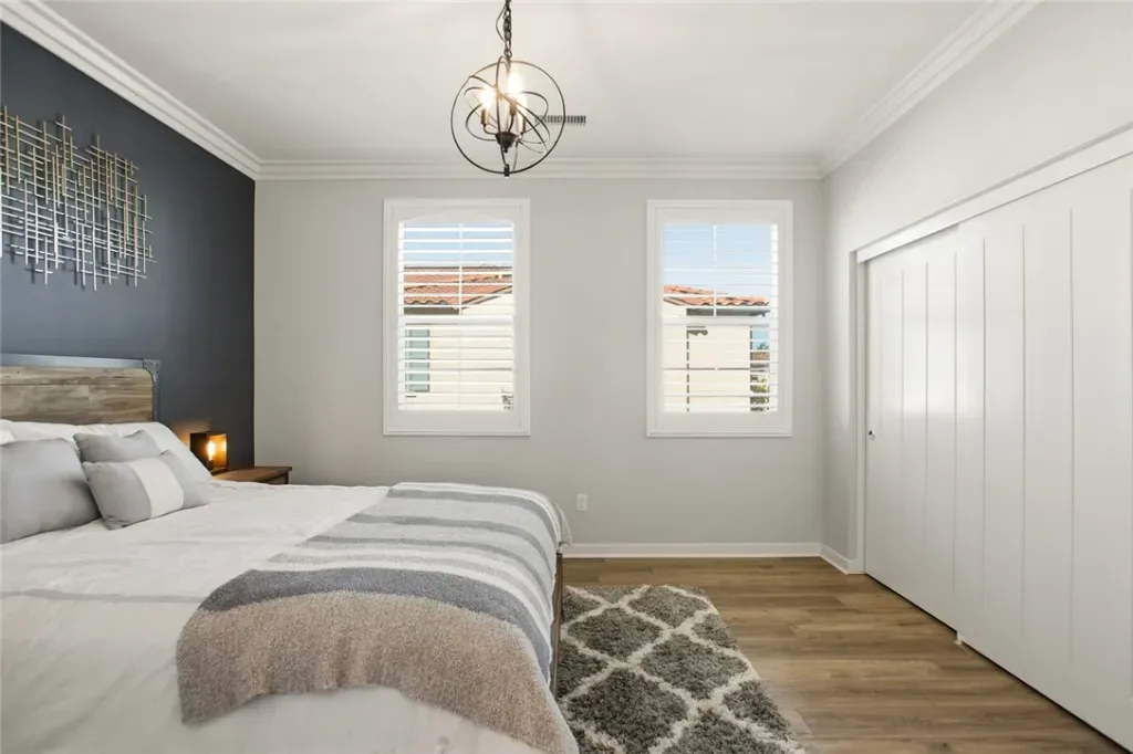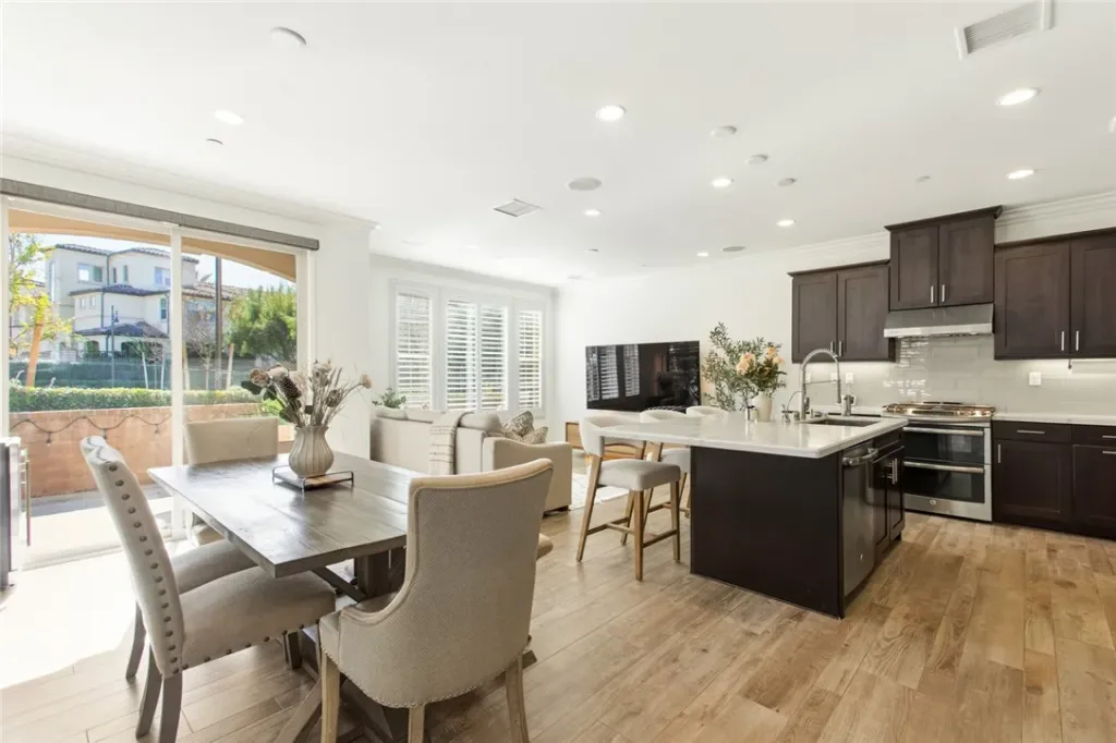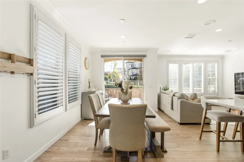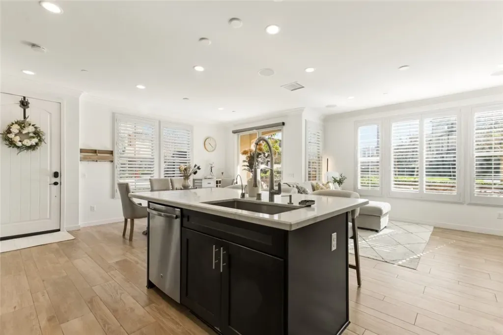 Premium corner end-unit in Baker Ranch with no front neighbor, abundant natural light, and serene views of greenery and a tot lot. This 3-bedroom, 2.5-bath home offers 1,655 sqft of modern living space with a bright, open floor plan. Step inside to discover a home filled with thoughtful upgrades: porcelain tile floors on the main level, wood laminate upstairs, recessed lighting, crown molding, and plantation shutters throughout. The Chef’s kitchen features stainless steel GE appliances, quartz countertops, soft-close cabinetry, and custom pull-out drawers. Upstairs, the spacious primary suite is a peaceful retreat, complete with a walk-in closet with built ins, glass shower, dual vanities, and separate toilet room. Secondary bedrooms share a remodeled Jack-and-Jill bath with custom lighting, while a separate laundry room with washer and dryer adds everyday convenience. Practical touches abound, including dual-zone HVAC with Nest thermostats, a newer water heater, a saltwater softener, and an epoxy-floored garage with top storage racks. Life at Baker Ranch means more than just a home. Residents enjoy exceptional community amenities, including pools and spas, clubhouses, parks, playgrounds, sport courts, open fields, and scenic trails surrounded by open space and foothill views. Conveniently located near freeways, shopping, dining, entertainment, and top-rated schools. 47 Finch is the perfect place to call home – blending modern comfort, thoughtful upgrades, and a vibrant community lifestyle!