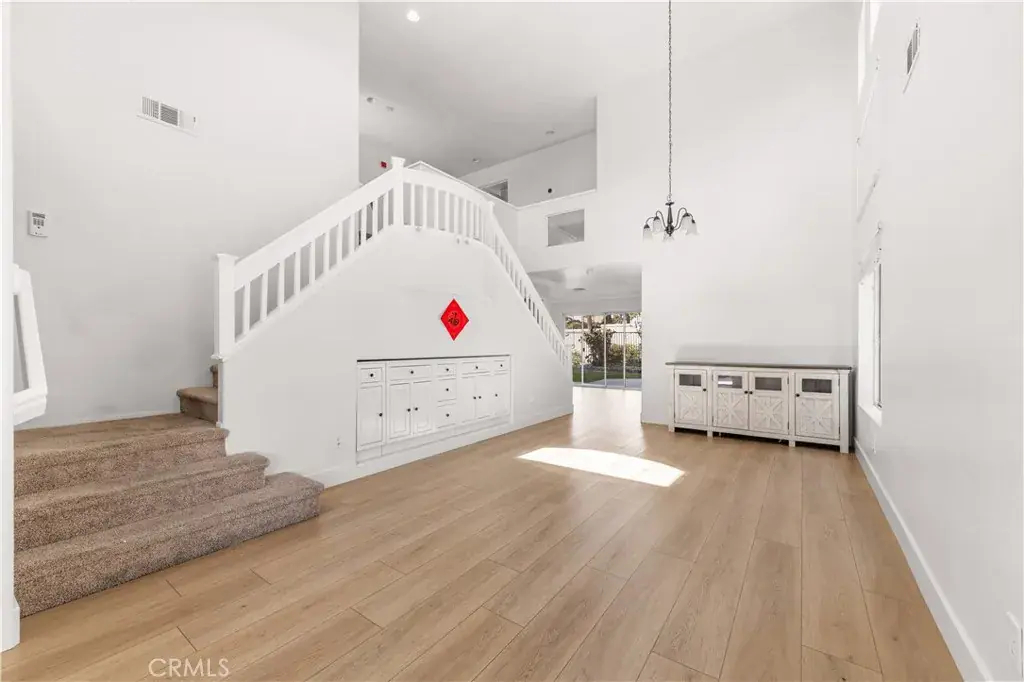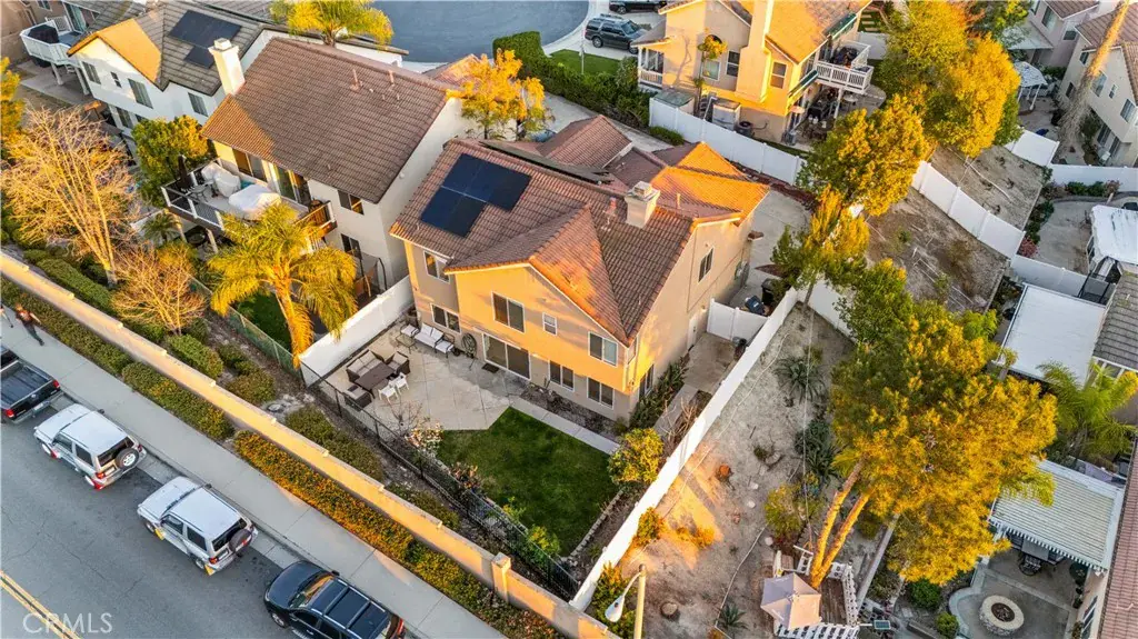 Mediterranean charmer featuring 4 bedrooms and 2.5 baths is nestled in the wonderful hillside community in Foothill Ranch!!Tucked away on a quiet cul-de-sac street, this home features a long driveway leading to a charming front courtyard with archways. Step inside the formal living room offering an impressive double staircase with media niche, high-volume ceilings, gorgeous wood flooring, and upgraded lighting. The large remodeled kitchen boasts beautiful white cabinet, granite counter tops, center island with granite top and drawers, dual sinks, crown molding, recessed lighting, and a large picture window for abundant natural light. Dining room features sliding glass doors with a sunny view of the backyard. Dining room opens to the family room boasting a large, built-in entertainment center, cozy fireplace, crown molding, upgraded ceiling fan, and plenty of windows. Home has convenient inside laundry. Master suite boasts high-volume ceilings, large walk-in closet, travertine floors, new vanity with granite counter top and dual sinks. Sitting area upstairs is used as a small loft perfect for the kids. The backyard features multiple entertaining areas, raised planters, lots of fruits trees. This home has it all plus it’s located just a short distance to an award-winning, Blue Ribbon elementary school, shopping, dining, and theaters. Must See!!