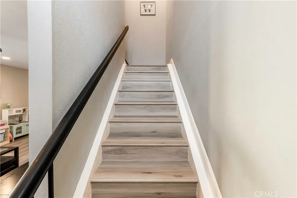 Upstairs, the spacious primary bedroom features a walk-in closet, while the secondary bedroom offers generous space and its own closet. Both bathrooms have been thoughtfully upgraded with new vanities, modern plumbing fixtures, and updated electrical finishes.