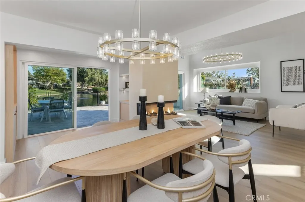 Set along the water on a rare corner lot, this residence stands as one of the community’s most refined and thoughtfully composed homes. Recently reimagined in its entirety, the property reflects a quiet confidence in design where natural materials, clean architecture, and soft light come together to create a home that feels both timeless and deeply considered. From the moment you enter, the interiors unfold with a sense of calm continuity. Wide plank floors carry throughout the main living spaces, grounding the home in warmth while allowing the architecture to breathe. Venetian plaster accent walls introduce a subtle texture that shifts with the light, adding depth without overwhelming the simplicity of the design. The open plan moves effortlessly from one space to the next, creating an atmosphere that feels expansive yet intimate. At the center of the home, the kitchen is both a sculptural focal point and a place for everyday gathering. A dramatic island wrapped in Taj Mahal quartzite anchors the space, its soft veining bringing a natural elegance to the room. Custom cabinetry and carefully integrated appliances create a seamless composition, while the surrounding dining and living areas remain visually connected to the landscape beyond. Large glass doors open the interior to the outdoors, allowing the home to extend naturally into the backyard. The patio becomes an outdoor living room overlooking the water, with generous seating and dining areas arranged to capture the views across the lake and toward the waterfalls. The corner lot position offers both privacy and a wider perspective, giving the home one of the most open and tranquil outlooks within Hidden Lakes. Upstairs, the primary suite serves as a peaceful retreat oriented toward the water. Large windows and a private balcony overlook the lake, offering a quiet place to begin and end the day while watching the light shift across the water. The suite is complemented by a beautifully designed en suite bathroom. Additional bedrooms upstairs provide comfortable and light-filled spaces, while a dedicated office on the main level offers flexibility and can easily function as a fifth bedroom for guests. Every element of the renovation was approached with intention, creating a residence where the architecture, materials, and setting feel completely aligned. The result is a home that moves gracefully between indoors and outdoors, between everyday living and quiet retreat.