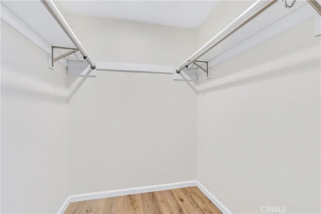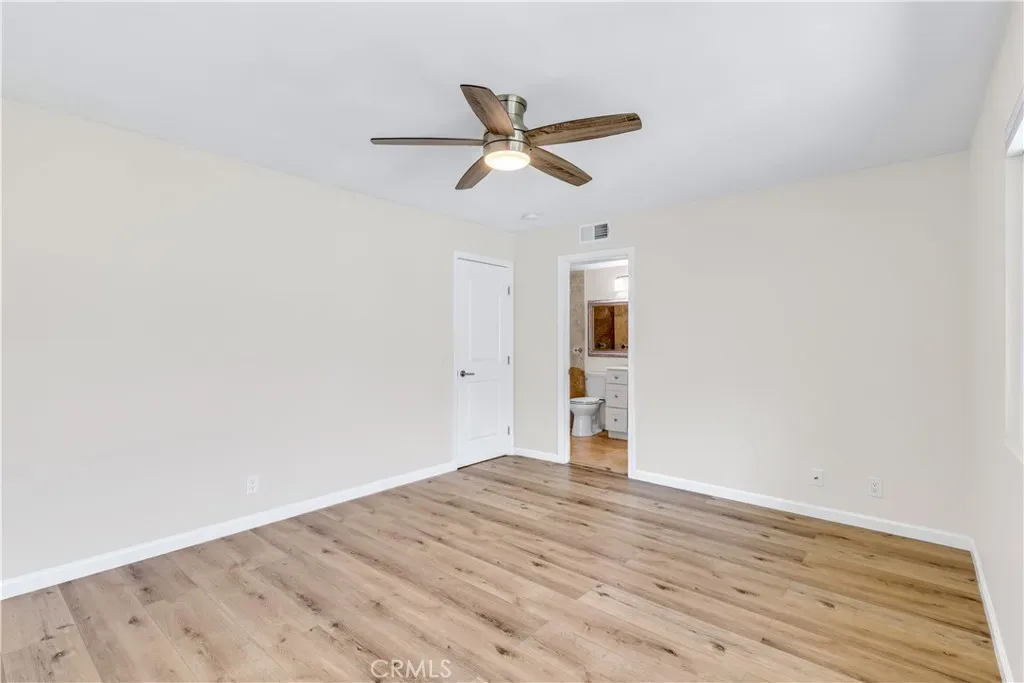 Upstairs, the residence features two primary bedrooms, each with remodeled full bathrooms and walk-in closets. This arrangement ensures privacy and separation from the active living areas found on the main floor.