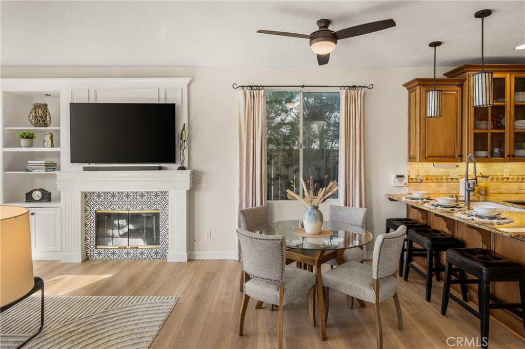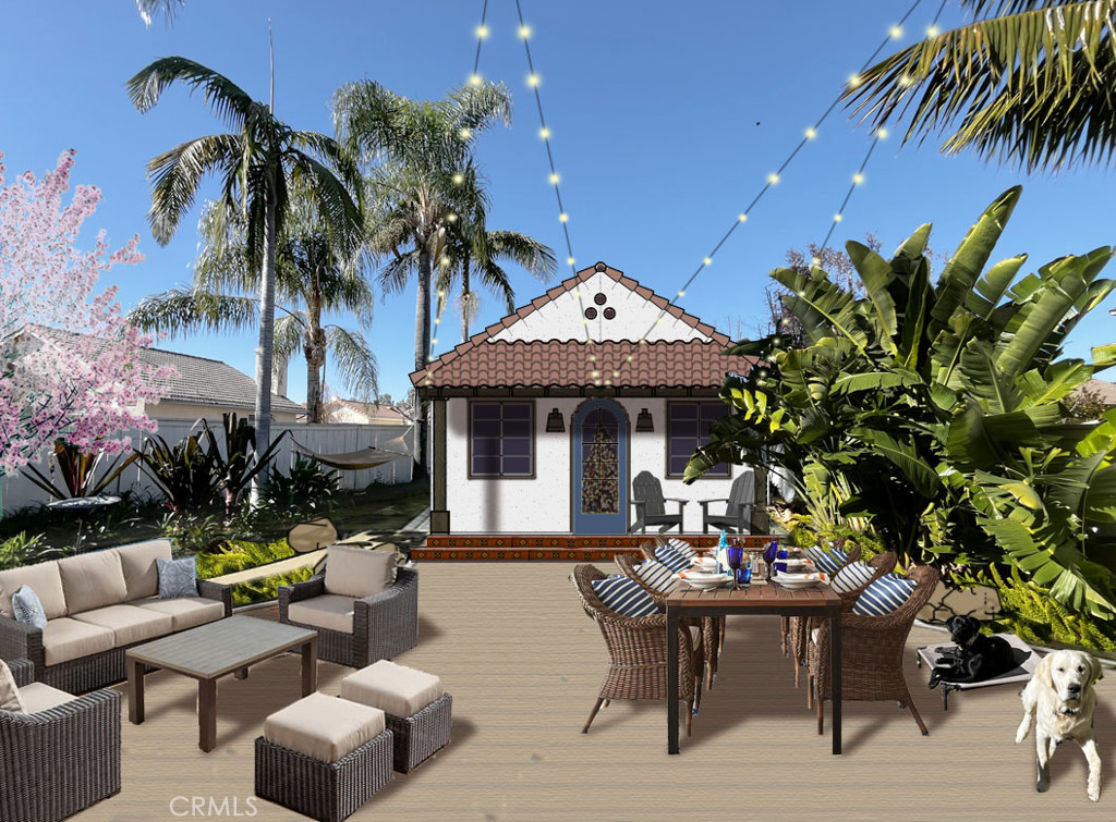 Beautifully maintained and thoughtfully upgraded, this 4-bedroom, 2.5-bath Foothill Ranch home offers 1,723 sq. ft. of inviting living space on a very quiet cul-de-sac, which has the largest yard on the block. Lovingly cared for by its second owner, the home blends charm, functionality, and future potential in a highly desirable neighborhood. The lush backyard is a standout, featuring mature apple, citrus, and pomegranate trees, a raised vegetable garden, an espaliered grape vine, perimeter flower beds, a large grass area, and a cedar shed ideal for storage or a creative studio. The spacious cement patio is piped for natural gas and perfect for outdoor dining and entertaining. An exceptional bonus includes architectural plans for a 370 sq. ft. detached ADU with loft, private entry, and separate address—currently under final review with the City of Lake Forest—offering excellent potential for rental income or multi-generational living. Inside, enjoy new blonde luxury vinyl flooring downstairs, fresh Antique White interior paint, plantation shutters, upgraded baseboards, ceiling fans, wainscotting, mirrored wardrobes, and new carpet upstairs. The open-concept great room features a Moroccan-style tile fireplace, breakfast nook, and spacious kitchen counter with bar seating. The kitchen showcases custom cabinetry with soft-close drawers, bronze-rubbed hardware, an Electrolux gas range with convection microwave, a KitchenAid dishwasher, and a built-in oversized pantry. Additional highlights include a remodeled powder room, an indoor laundry room with custom cabinetry and a granite countertop, a large dining room with vaulted ceilings and custom beams, a primary suite with a walk-in closet and granite countertops, a remodeled Jack-and-Jill bath, and a permitted fourth bedroom or office. Freshly painted garage with extra-deep flooring and storage. Located on a friendly street near Whiting Ranch trails, with HOA amenities including a pool and recreation center, this home offers comfort, space, and a rare opportunity in Foothill Ranch. Sellers have found their next home and priced it to sell fast. Hurry on this one, it won’t last long.