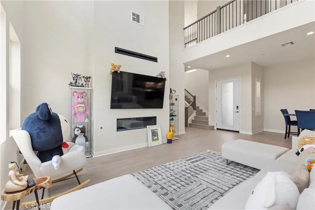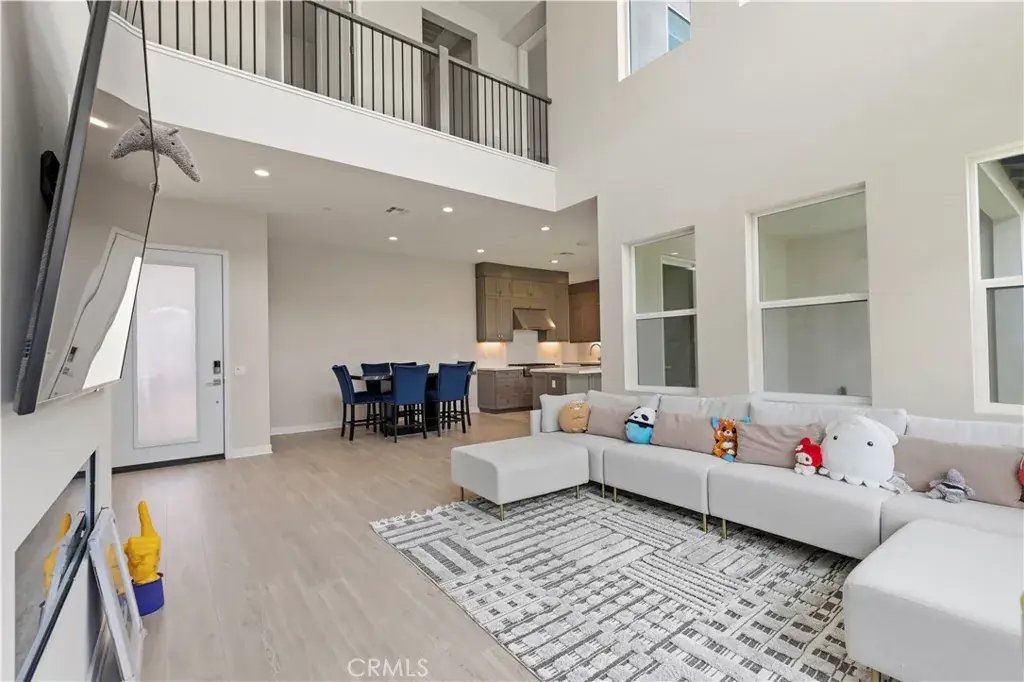 The kitchen is a true centerpiece, featuring sleek quartz countertops, custom cabinetry, and stainless steel appliances, alongside a spacious island that invites gathering and casual dining. Whether you’re hosting friends or enjoying a quiet meal, this space is both beautiful and functional. Adjacent to the kitchen, the living and dining areas offer plenty of room to relax, work, or play in a warm and welcoming environment.