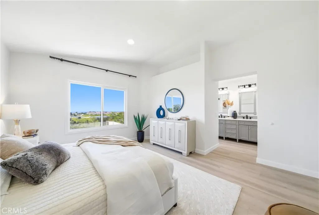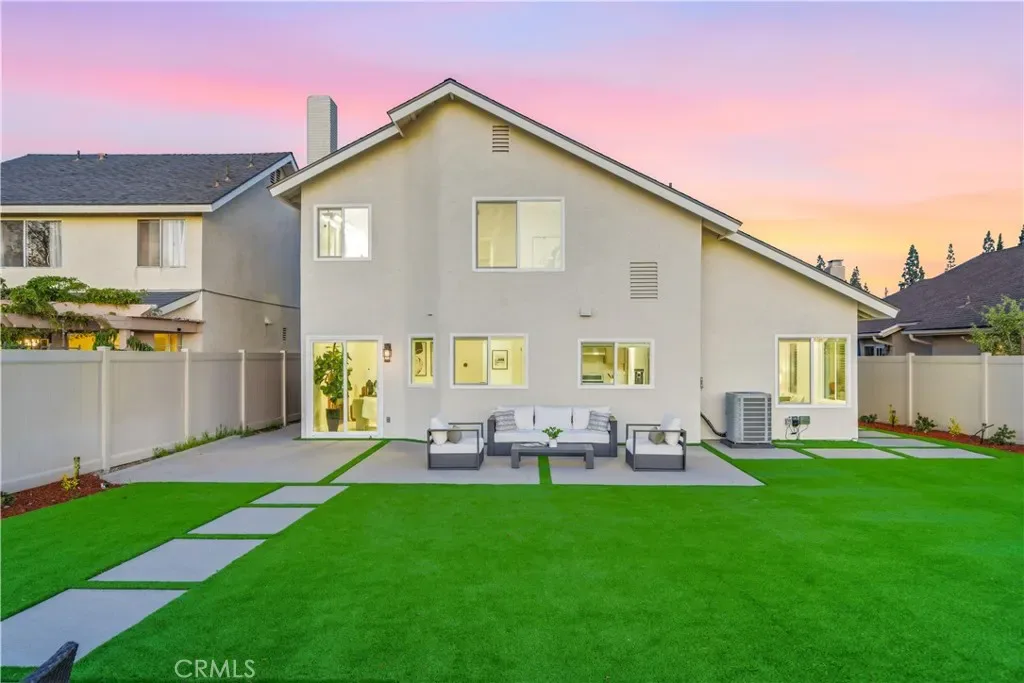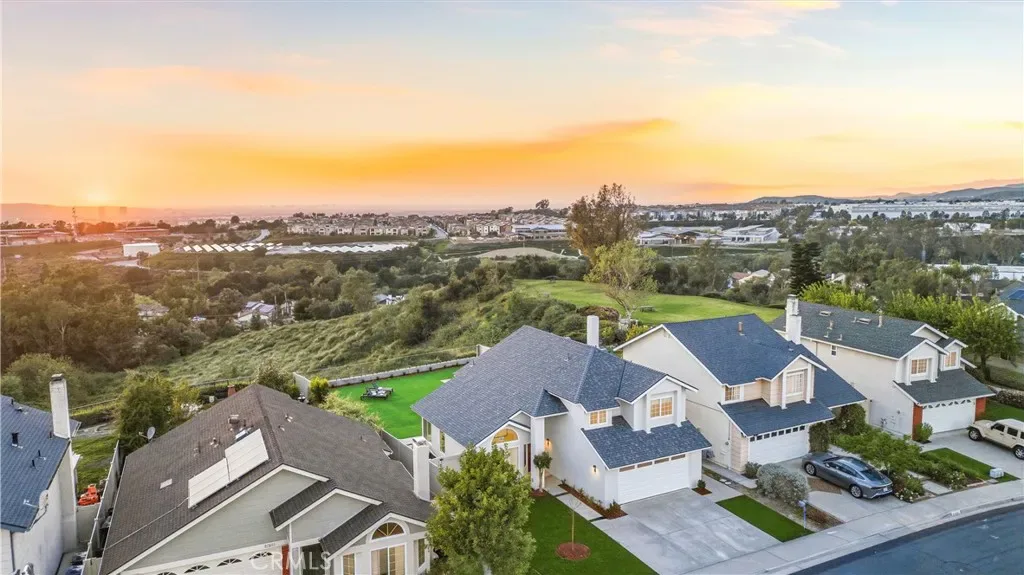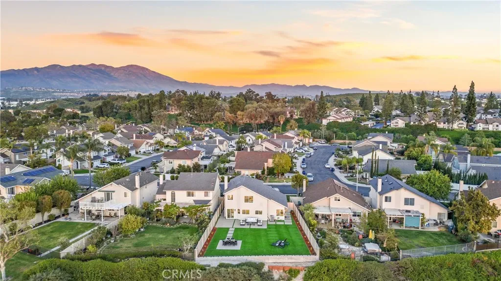 Showcasing sweeping city lights, hills and sunset views is this stunning completely remodeled light and bright residence that is on one of the largest lots in the tract and is adjacent to 2 community parks. Starting with striking low maintenance curb appeal, there are turf lawns and manicured planter beds which lead into the breathtaking formal living and dining room spaces which have views out to the expansive turf yard and to the panoramic views beyond and amazing light and a space. Clean and fresh the tone is set and with high-end porcelain wood-look tile floors that continue throughout the lower level, SPC wood flooring sets the scene upstairs, bright neutral paint and upgraded everything making this home the definition of turnkey. Off the dining room is a fully renovated kitchen featuring chic, updated cabinetry, quartz countertops, all new hardware, recessed lighting, an abundance of prep and storage space and stainless-steel appliances. This opens to a casual eat-in area and a spacious family room which has great light from a large glass door out to the view yard that allows for enviable indoor/outdoor living. A guest bath and garage access completes the lower level. Upstairs there is a small landing, perfect for a desk, and to the left is the primary suite which has stunning sunset views, double door entry, great space and light, recessed lighting and a fully renovated spa-like ensuite that features a an updated dual-sink quartz vanity, updated fixtures, hardware and lighting, a privacy water closet door and large walk-in closet. Two additional bedrooms and a fully renovated guest bath complete the upper level. Out back is a worry-free turf yard with multiple seating areas defined by all new concrete pads all laid out with taking full advantage of the panoramic unobstructed view in mind. A ring of manicured planting beds surrounds the yard, and fully transparent fencing allows for truly captivating sunset views. Situated on a great neighborhood street, on a bluff high above the surroundings, this home has an attached 2 car garage, a 2-car driveway and is just minutes from great schools, fantastic shopping, dining and entertainment and is convenient to multiple commuting options. This is the one! Welcome home!