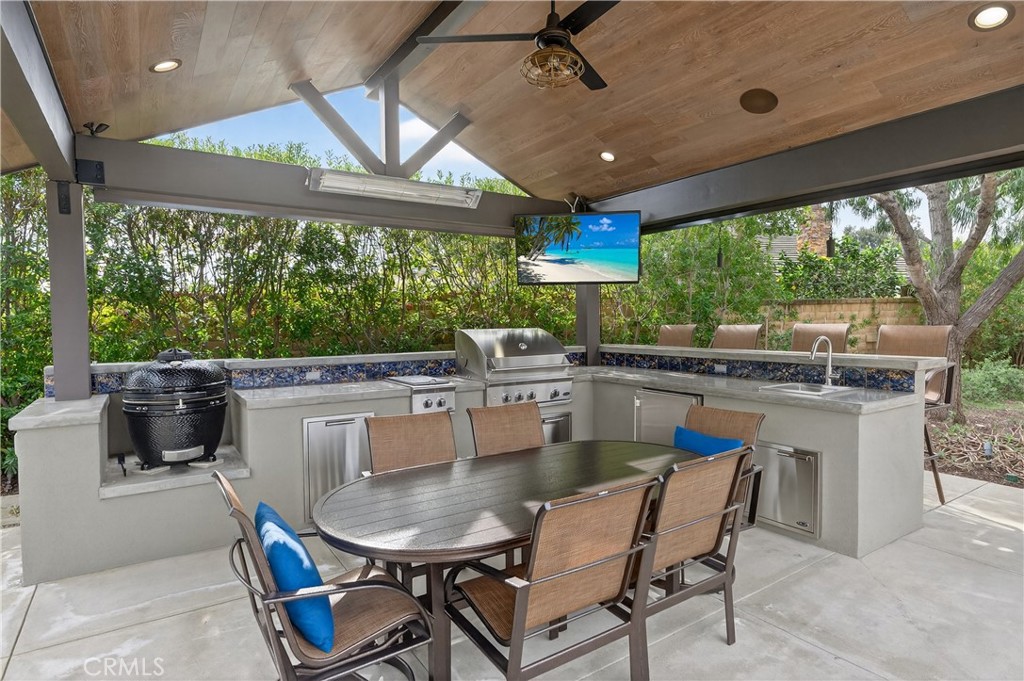 The primary bedroom offers a spa-like ensuite with rain-shower fixtures, walk-in closet and seamless access to the grounds via elegant French doors. Additional interior features include custom Loewen casement windows, dual-zoned HVAC (installed in 2025), and a dedicated office featuring sound-absorbing panels and custom workstations. Transitioning outdoors, the property transforms into a private resort. An expansive outdoor kitchen — equipped with DCS Series 9 grilling tech, Pit Boss Kamado, and Infratech heaters—overlooks a pristine PebbleTech pool and spa. With an owned 22-panel solar system plus a 12-panel pool solar heat system, security system, this turnkey estate is as smart as it is beautiful. Ask your agent for a full features list. Welcome home.