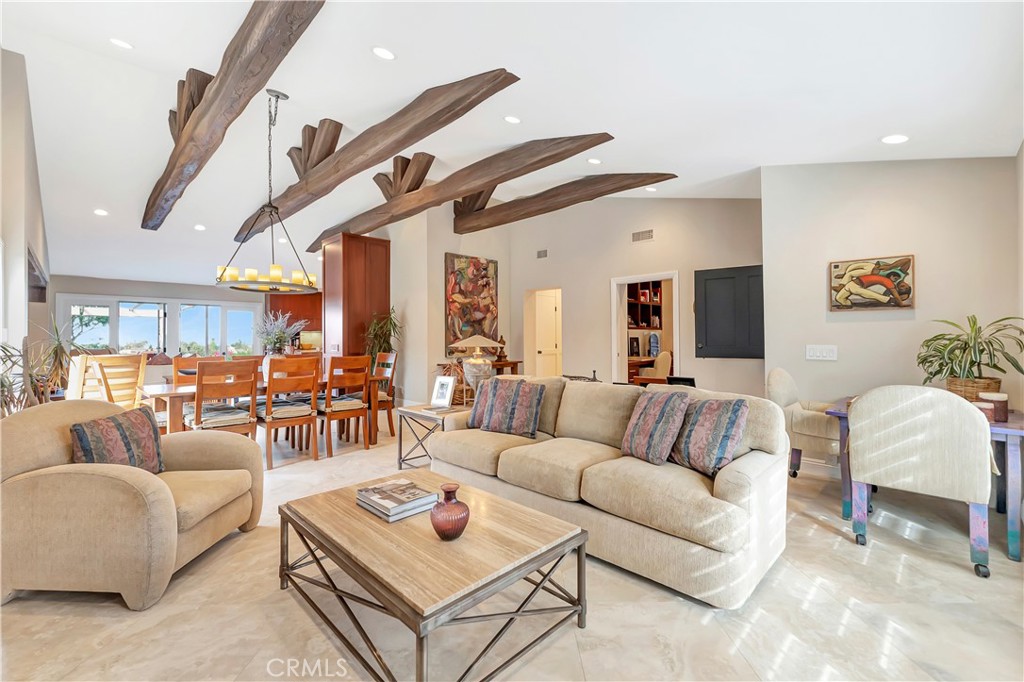 Architect’s own home, equestrian zoned, amazing views to the ocean! Every inch of this home has been improved. This incredible residence is situated in the sought after, exclusive community of Montbury on the Hill, nestled in North Lake Forest. The community boasts wide streets, large lots surrounded by equestrian & hiking trails, & for your enjoyment, 4 community pickle ball courts & 2 tennis courts. Close to everything, yet you will feel like you are in the country! Come & sit on the front patio of this gorgeous home & enjoy the custom landscaping. Walk through the Dutch door entry into the great room. You will be amazed at the beauty, elegance, & warmth, enticing you to sit & stay awhile! Delight in the volume ceilings with custom beaming; two wood-burning fireplaces w/custom mantels; reading area & TV area; dining area illuminated by a beautiful Laura Lee chandelier; private side yard patio w/Eldorado Stone walls & the stunning beauty of the stone being carried through to the living area & to the backyard walls. The spacious great room is complimented with built-in cabinetry & 2 sets of paired French doors leading to the resort-style back yard. The bedroom/office situated off the great room is enhanced w/ custom beaming, built-in desks & bookcases, & an exercise area. The incredible kitchen is a chef’s delight w/ spacious Giallo Antico stone countertops, two stone sinks, two dishwashers, Viking side-by-side built-in refrigerator, Thermador double oven, Thermador 6-burner range-top with griddle, custom cabinetry, & pantry. White paneling provides elegance to the hallway, bathrooms, laundry room & bedrooms; built-in cabinetry throughout! The secondary bathroom is beautiful w/ white custom cabinetry, quartzite countertop w/ waterfall edge, & spacious shower w/ skylight. The secondary bedroom opens to a private patio & climb the ladder in this bedroom to a special ‘hang place.’ The main bedroom is one of beauty & perfect organization! The main bathroom boasts dual shower heads, soaking tub, white custom cabinetry & quartzite countertop w/ waterfall ends. The jaw dropping, resort-style backyard has incredible mountains, city lights, & sparkling ocean peek-a-boo views. A detached studio in the backyard was created by the Architect as his place for reflection & creative endeavors. The 3-car garage side yard area is perfect for your outdoor getaway items – a trailer, boat, or off-road vehicles. There is simply not enough space to describe this phenomenal home…