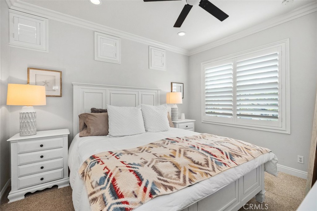 The heart of the home is the renovated kitchen, featuring brand-new stainless steel appliances, quartz countertops, a large steel farmhouse sink, modern fixtures and white cabinetry. Crown molding and custom plantation shutters add refined architectural detail, while new ceiling fans, newer carpet and fresh finishes provide comfort and style. Recent high-end HVAC installation ensures efficient climate control year-round!