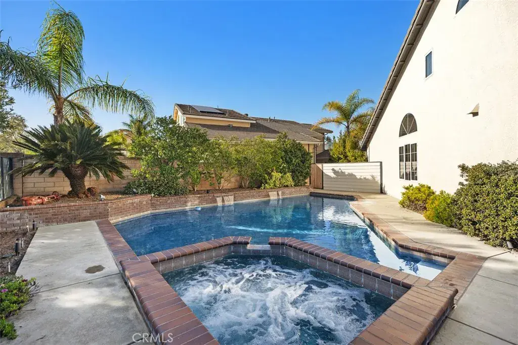 closets and mountain vistas. you will appreciate spaciousness of a 3 car garage added new water heater and added cabinets. Let’s talk about this paradise wrap around back yard , lots of fun can be had entertaining friends in this custom pool and spa operated jandy control system to control from within home. HOA dues only$112/mo and no Mello Roos tax .. make this beautiful home you’re dream come true!