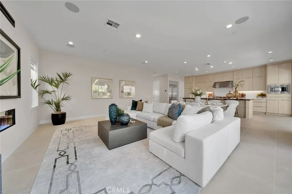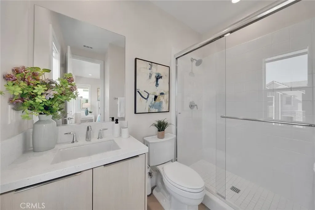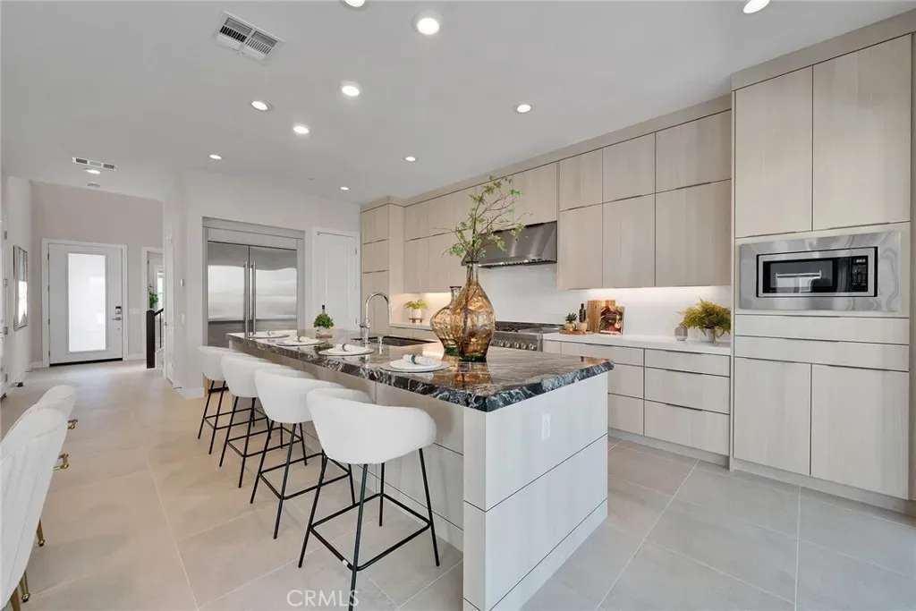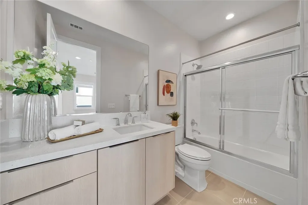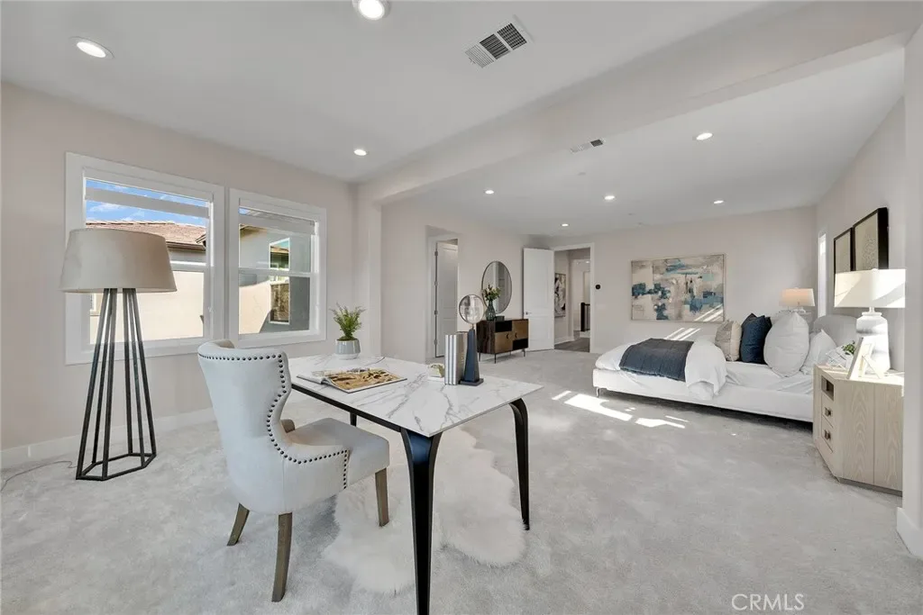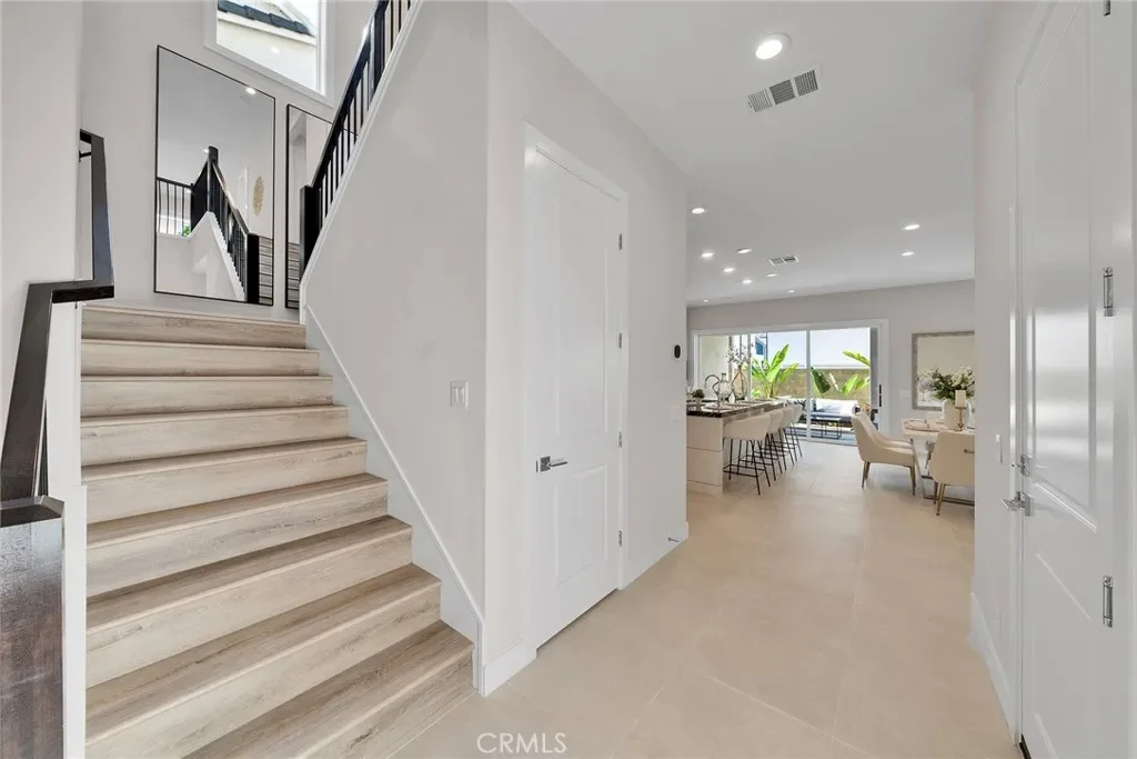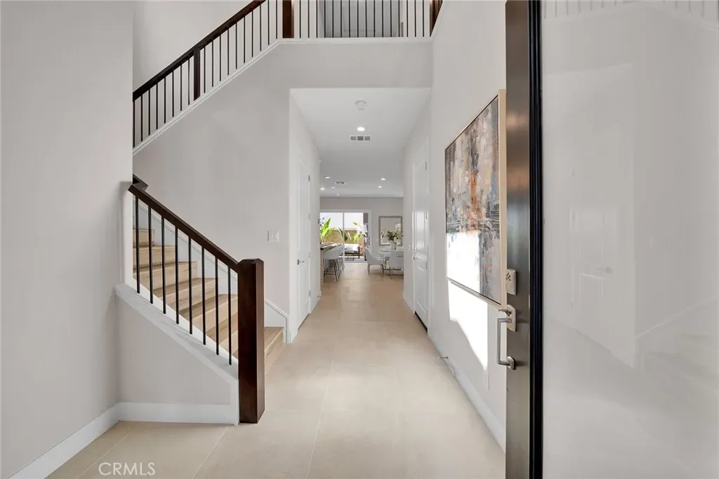 Located at Toll Brothers The Meadows community with an amazing lifestyle surrounded by hiking and biking trails, swimming pools, sport park and kids playground. Walking distance to the central main park. 5 bedroom and 5 bathroom single family house with a loft upstairs. High ceiling foyer and open floor plan from living room to dining room with two multi-slide stacked glass doors open leads you to the California room and outdoor living space. The kitchen features stainless steel appliances which include built-in range with ovens, hood, dishwasher and built-in refrigerator. Marble effect porcelain slab wall with custom entertainment unit cabinetry. Wood flooring through whole house and walnut wall in entry and great room. Master Bedroom with extend retreat room and three side windows surrounding and a huge walk in walking closet and upgraded shower tile in all bathroom. Paid and owned solar panels and system. Highly regarded saddleback valley unified school district and close to many private school. Home Depot, fitness center, The Foothill shopping center and Irvine Spectrum Center is close by.