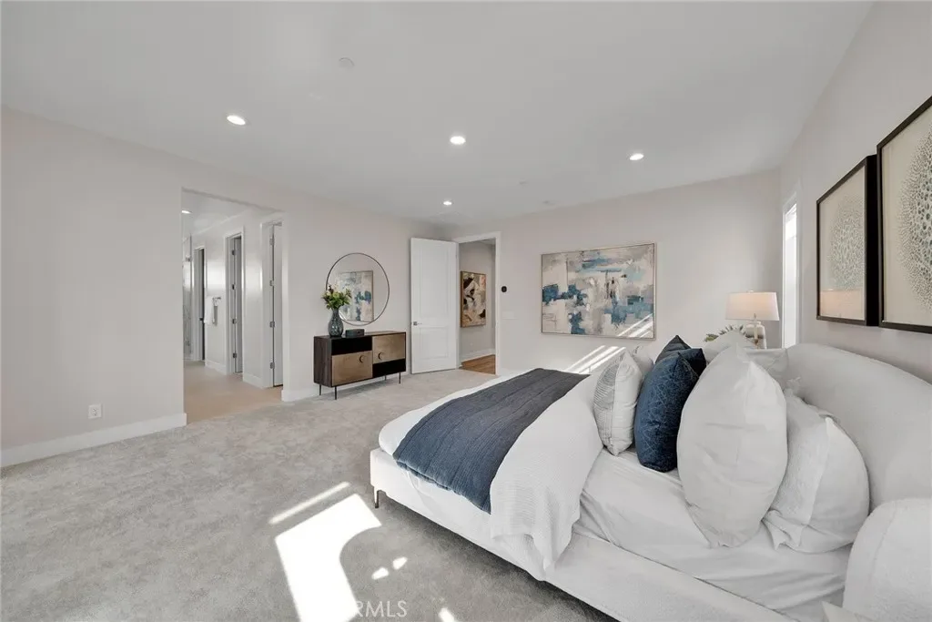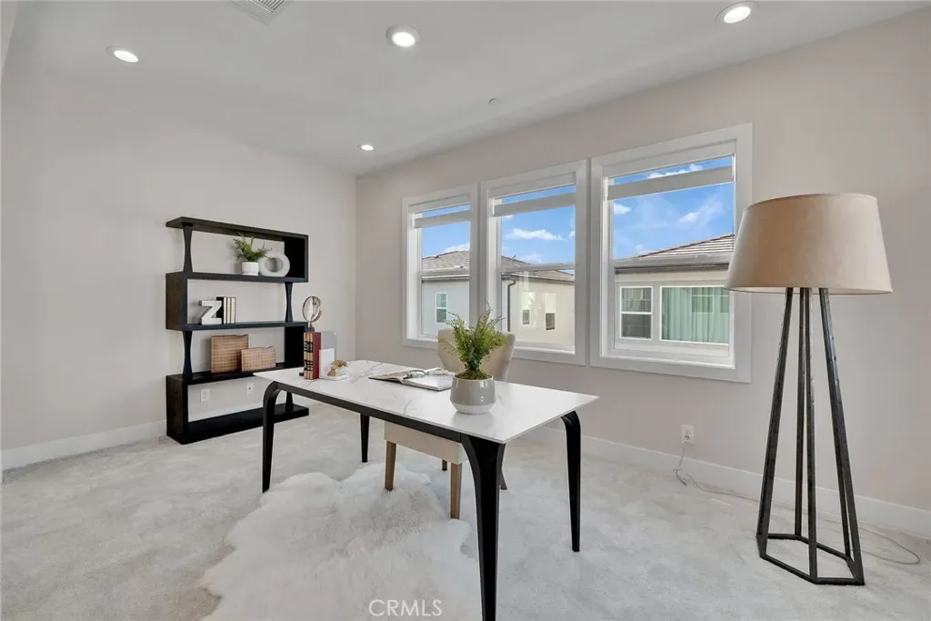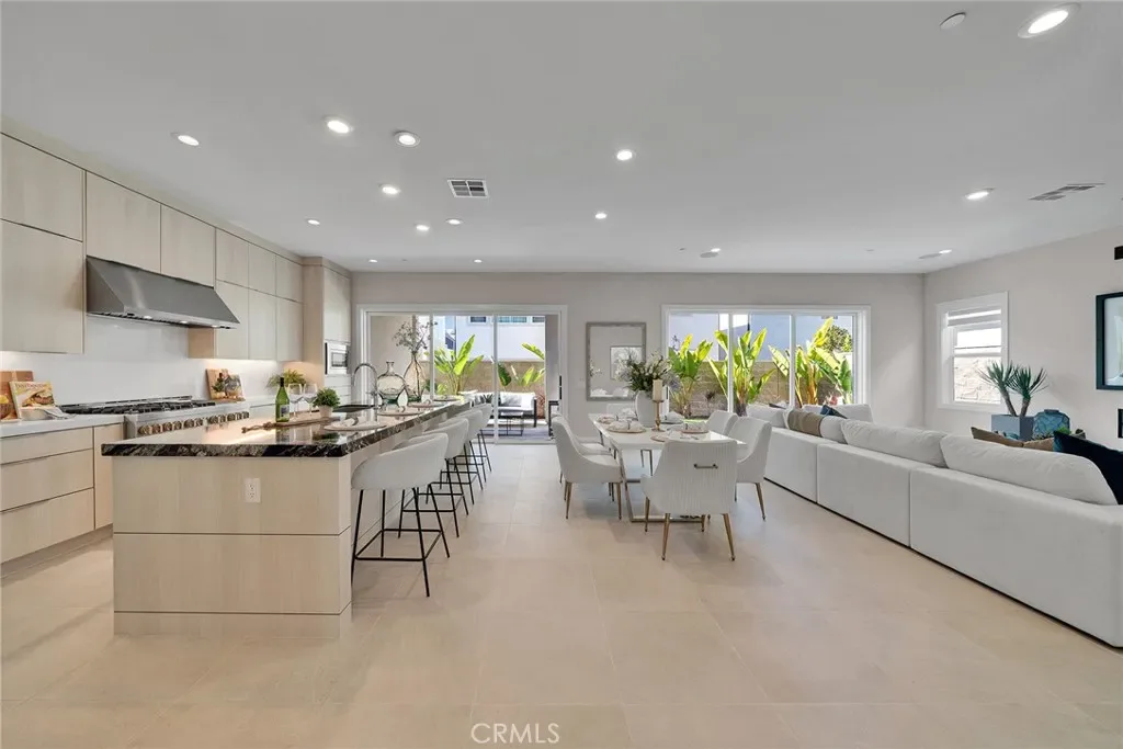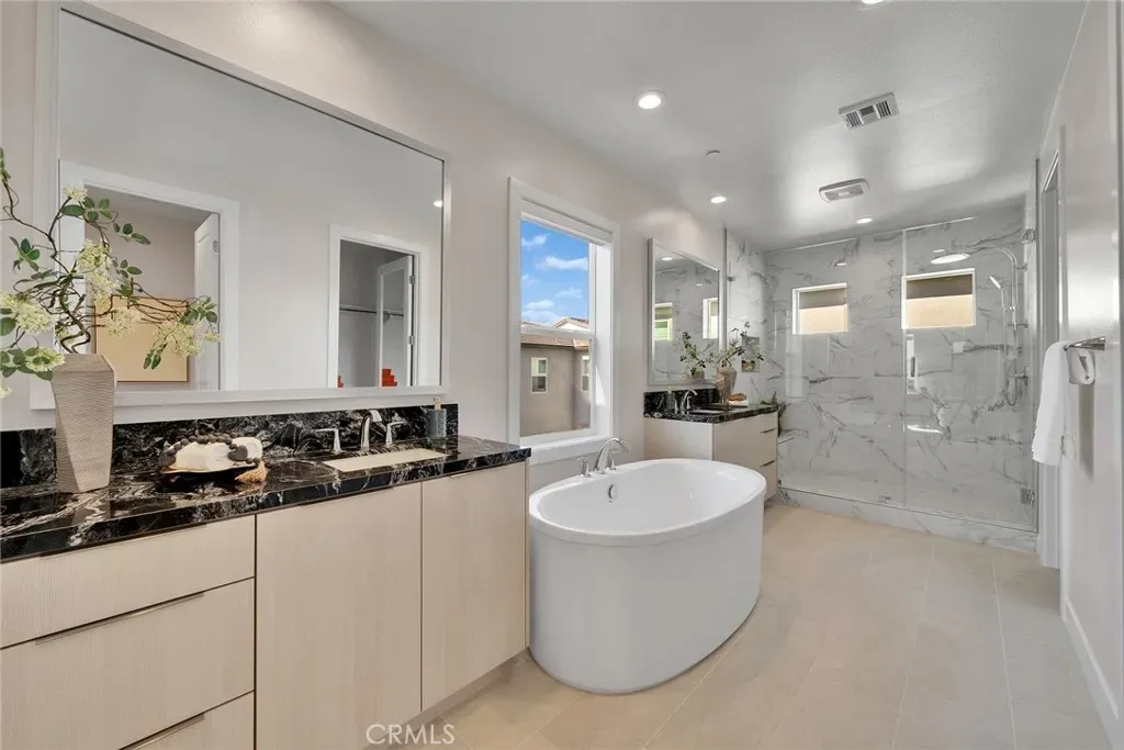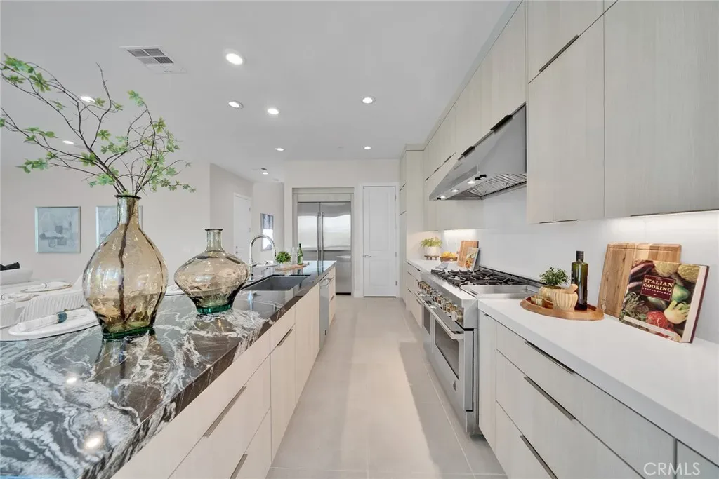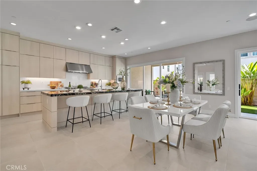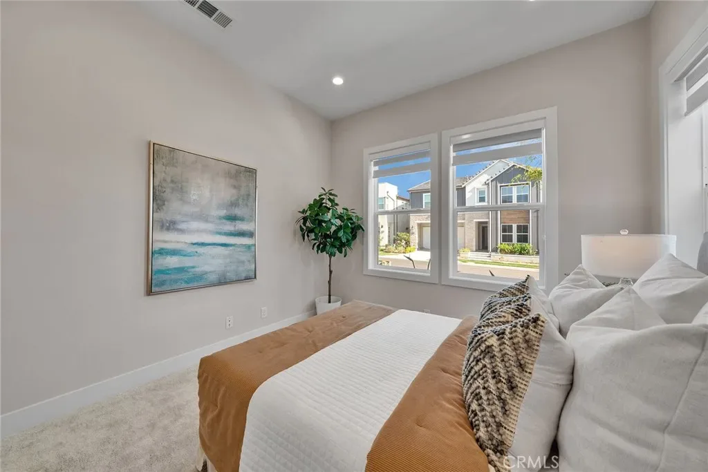 Located at Toll Brothers The Meadows community with an amazing lifestyle surrounded by hiking and biking trails, swimming pools, sport park and kids playground. Walking distance to the central main park. 5 bedroom and 5 bathroom single family house with a loft upstairs. High ceiling foyer and open floor plan from living room to dining room with two multi-slide stacked glass doors open leads you to the California room and outdoor living space. The kitchen features stainless steel appliances which include built-in range with ovens, hood, dishwasher and built-in refrigerator. Marble effect porcelain slab wall with custom entertainment unit cabinetry. Wood flooring through whole house and walnut wall in entry and great room. Master Bedroom with extend retreat room and three side windows surrounding and a huge walk in walking closet and upgraded shower tile in all bathroom. Paid and owned solar panels and system. Highly regarded saddleback valley unified school district and close to many private school. Home Depot, fitness center, The Foothill shopping center and Irvine Spectrum Center is close by.