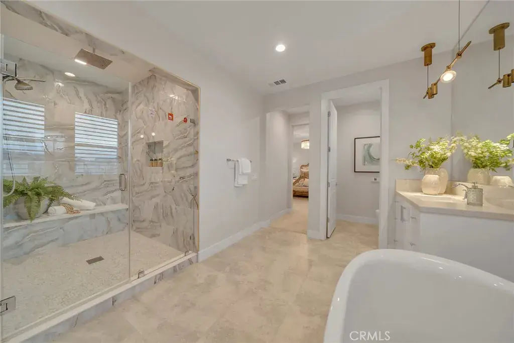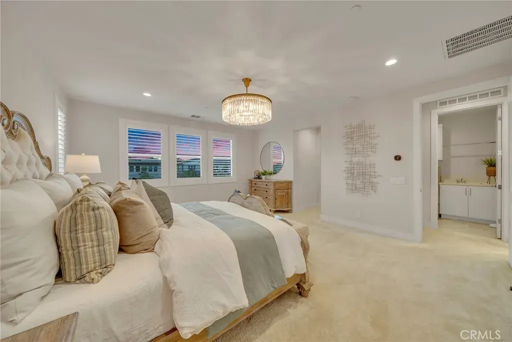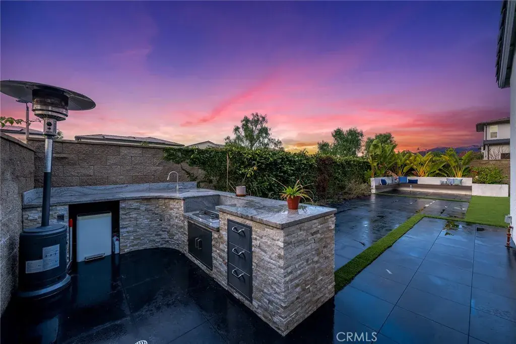 Open-concept floor plan with abundant natural light and over $300K invested in extensive interior and backyard upgrades, including a chef’s kitchen with JennAir stainless steel appliances, upgraded cabinetry, modern tile bathrooms, fireplace, and fully paid solar. Beautifully landscaped backyard with covered patio and outdoor kitchen. Features include a downstairs in-law suite, spacious upstairs loft, and four en-suite bedrooms upstairs, including a luxurious primary suite with spa-like bath and walk-in closet. Quiet interior location with hill views, steps to pocket park, and one block from Central Park and resort-style clubhouse, pool and spa. Community offers parks, trails, dog parks, and sports fields. Convenient to shopping, dining, and major freeways. Located in Saddleback Valley USD. Low HOA and No Mello-Roos.