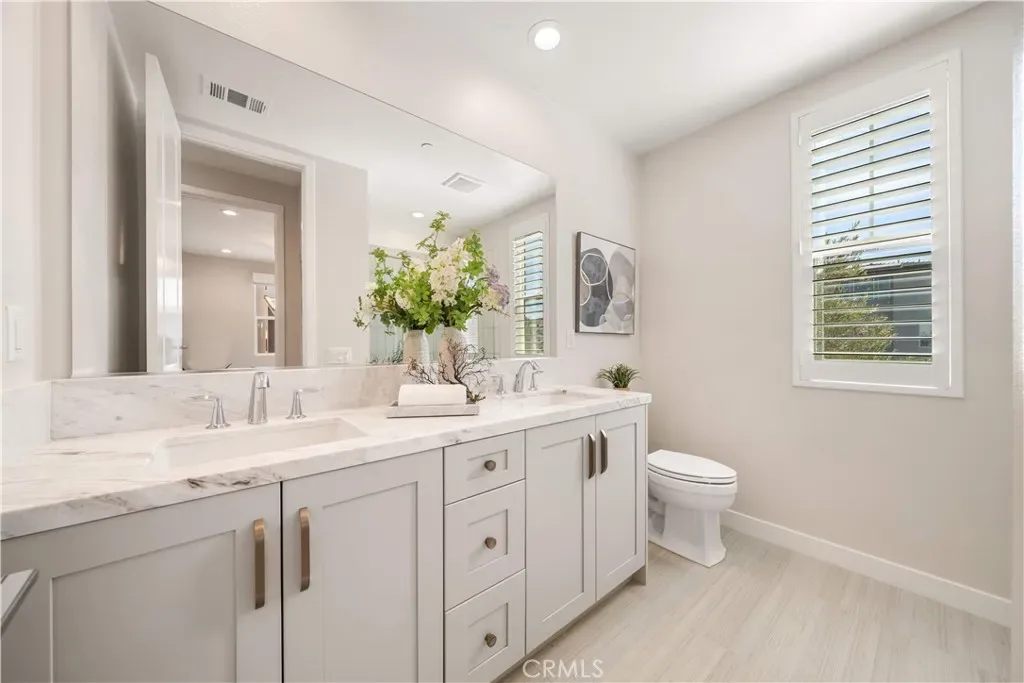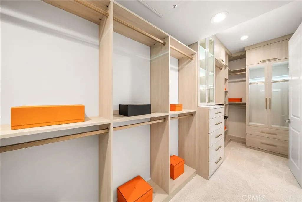 Upstairs, four well-appointed bedrooms provide comfort and privacy. The primary suite enjoys park views and includes a dedicated space for a vanity or sitting area. The spa-inspired primary bathroom features dual vanities, designer finishes, a walk-in shower, and a beautifully upgraded walk-in closet with built-ins, drawers, and integrated lighting. The secondary bedrooms are generously sized and thoughtfully laid out.