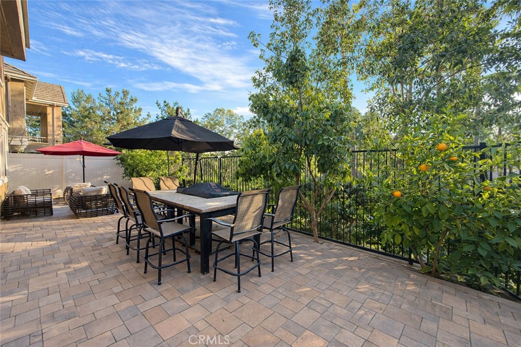 The home’s exterior offers excellent curb appeal with a paver driveway and an inviting front porch. The private backyard is thoughtfully designed with pavers, tranquil tree views, and an outdoor Teppanyaki grill table with seating—ideal for outdoor dining and gatherings.