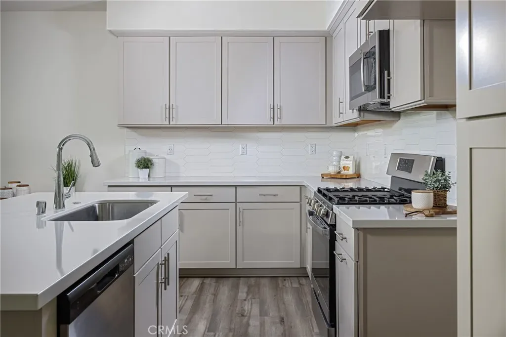 Welcome to this beautifully upgraded 2 bedroom, 2.5 bathroom townhome in the highly desirable gated community of Iron Ridge. This home offers modern upgrades, a spacious two-car garage, and an ideal layout designed for comfort and style. Step inside to luxury vinyl plank flooring throughout and a bright, open living space. The cozy family room is filled with natural light from multiple windows, creating a warm and inviting atmosphere. The chef’s kitchen features shaker-style cabinets, quartz countertops, a custom backsplash, stainless steel GE appliances, and a large kitchen island—perfect for entertaining. Upstairs, both bedrooms provide comfort and privacy. The spacious primary suite boasts a large walk-in closet and an elegant ensuite bathroom with quartz countertops, a double vanity, and an oversized shower creating a spa like experience. The secondary bathroom is beautifully finished with quartz countertops, stylish upgraded fixtures, and a tub/shower combination. For added comfort, this home includes a QuietCool whole house fan and an energy-efficient tankless water heater. Enjoy resort-style living with exclusive HOA amenities, including a clubhouse, swimming pool, spa, parks, tot lots, tennis courts, barbecue areas, and picnic spots. Conveniently located near award-winning schools, Foothill Town Center, and Whiting Ranch Wilderness Park. Easy access to freeways and toll roads. Low property taxes and no Mello Roos make this an exceptional opportunity!