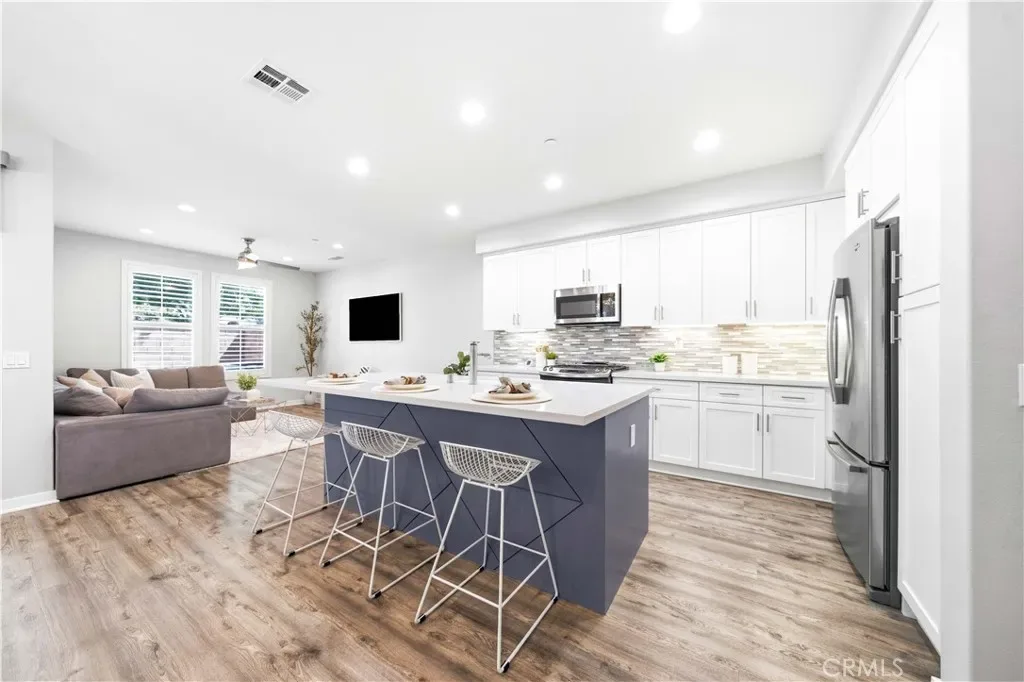Welcome to 49 Finch, an exceptional and impeccably upgraded residence in the highly coveted, resort-style community of Baker Ranch. Proudly offered by its original owners, this 3-bedroom, 2.5-bath home with two expansive lofts reflects meticulous care, thoughtful enhancements, and true pride of ownership. Positioned as a premium front-facing home, it offers enhanced privacy, abundant natural light, and picturesque views. Upon entry, you’re greeted by a light-filled, open-concept layout with designer flooring throughout—including bedrooms, lofts, and stairs—creating a cohesive aesthetic. The interior features a custom paint palette and shutters throughout. The gourmet kitchen showcases quartz countertops, an oversized island with decorative detailing, stainless steel appliances, and white cabinetry, opening to the expansive great room ideal for entertaining and daily living. Upgrades include designer lighting, modern faucets, LED lighting, and Lutron smart switches. The great room opens to a covered California Room with ceiling fan and a professionally landscaped backyard with artificial turf and pavers for low maintenance. Upstairs, a versatile loft adds flexibility, while the primary suite features a spa-inspired bath with dual vanities and a frameless glass shower. Two secondary bedrooms and a laundry room complete the second level. The third-floor loft offers a spacious, light-filled area ideal for a gym, media room, or office. Additional upgrades include security window film and a permitted 220V (NEMA 14-50) EV outlet. Baker Ranch amenities include pools, parks, trails, sports courts, and a clubhouse, with low HOA and no Mello-Roos. A rare opportunity to own a highly upgraded, turnkey home in one of Orange County’s most sought-after communities.