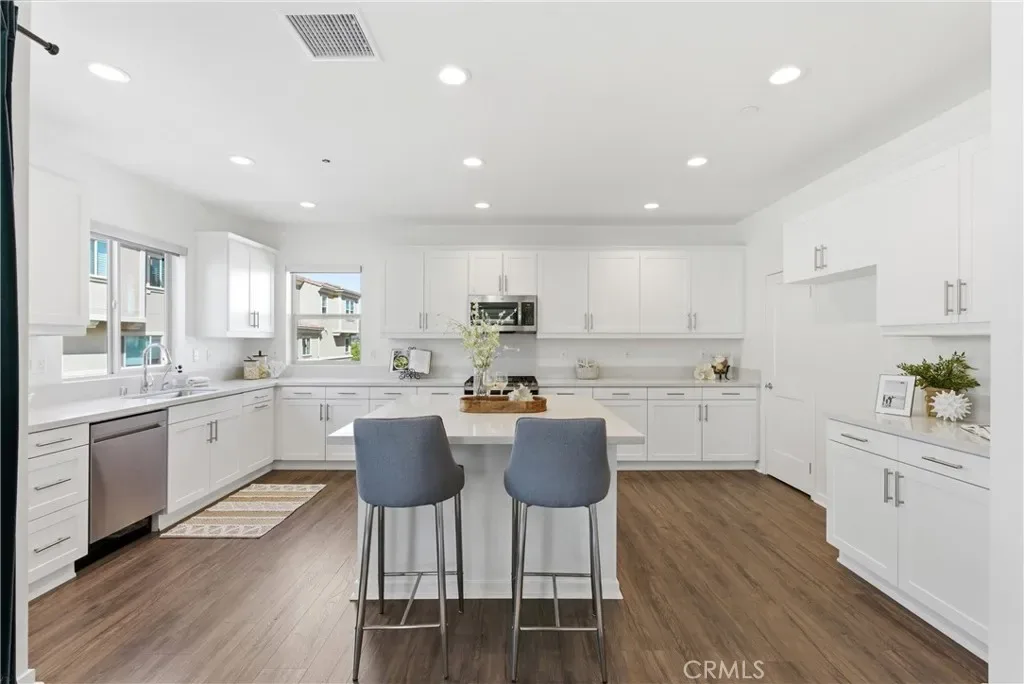 Welcome to this beautifully upgraded three-level condominium located in a desirable guard-gated community of Iron Ridge nestled in the foothills of Portola Hills. This light-filled end unit stands out from the rest, offering enhanced privacy and an abundance of natural sunlight throughout. The home features upgraded flooring, new carpet, and fresh interior paint, creating a modern and move-in-ready feel that is also smart-home ready with high-speed mesh integration. The family room, dining area, and kitchen seamlessly flow together on one level, creating an open-concept layout ideal for both everyday living and entertaining. The spacious kitchen is designed for both function and style, complete with a large island, bar seating, and a generously sized walk-in pantry. Enjoy seamless indoor-outdoor living with two private patios, ideal for relaxing or hosting guests. The attached 2 car garage includes a convenient EV charger, adding to the home’s modern appeal. A highly desirable ground-level bedroom and full bathroom provide excellent flexibility for multigenerational living, guests, or a private office. This space also features direct access to the lower patio through a sliding glass door.. Upstairs, the primary suite offers a true retreat with a generously sized ensuite bathroom featuring dual vanities and a large walk-in closet. Residents of this well-maintained community enjoy access to resort-style amenities including a pool, spa, clubhouse, barbecue areas, and more. Just steps away outside the community gates is Portola Park, which has 3 pickleball courts, a sand volleyball court, large playground area, grass area, dog park and walking path. Ideally located with close proximity to the toll road, this home offers both comfort and convenience for commuters and lifestyle seekers alike. Don’t miss this exceptional opportunity to own a bright, upgraded end-unit in one of Lake Forest’s most sought-after communities.