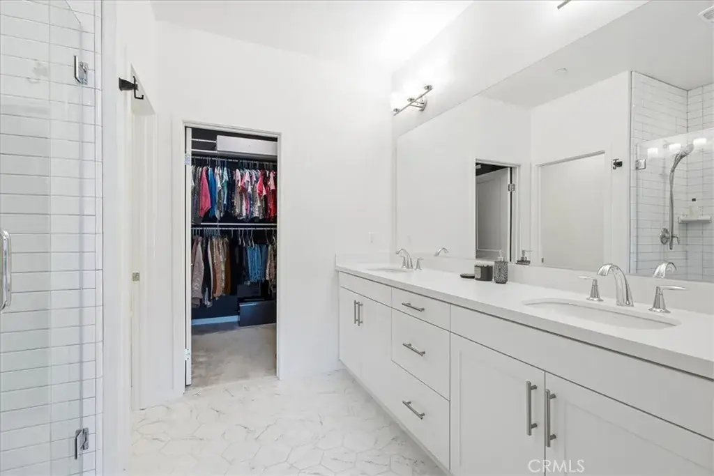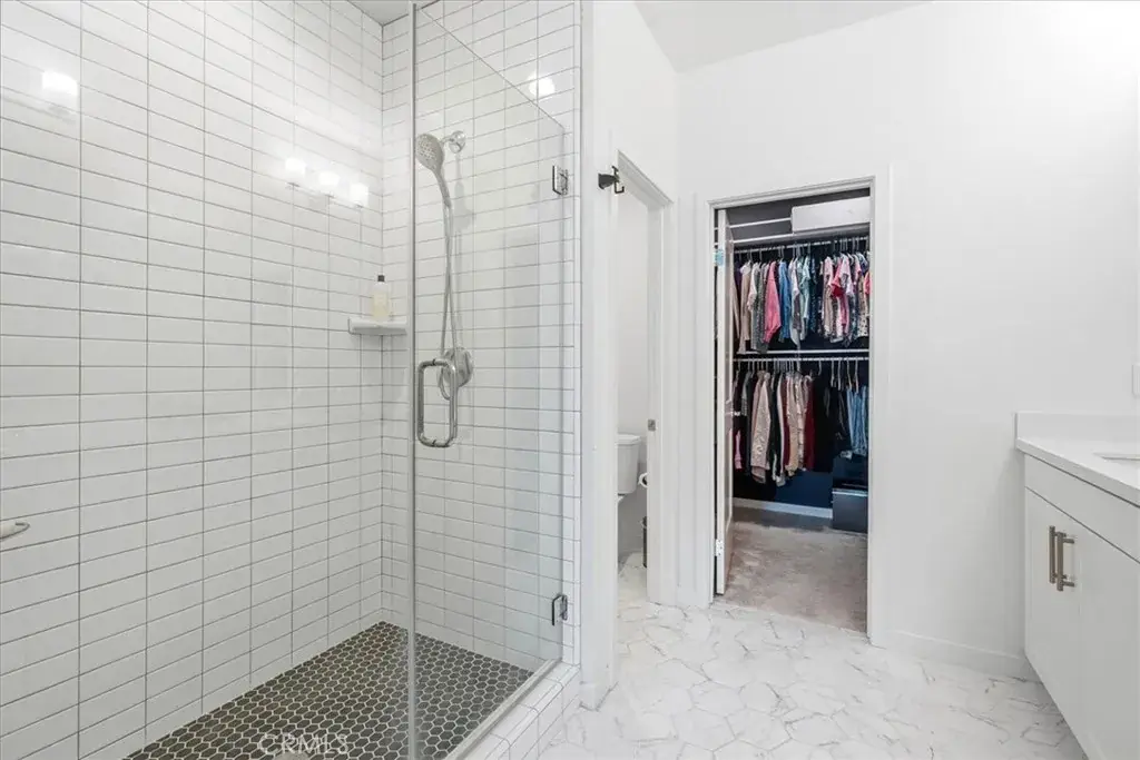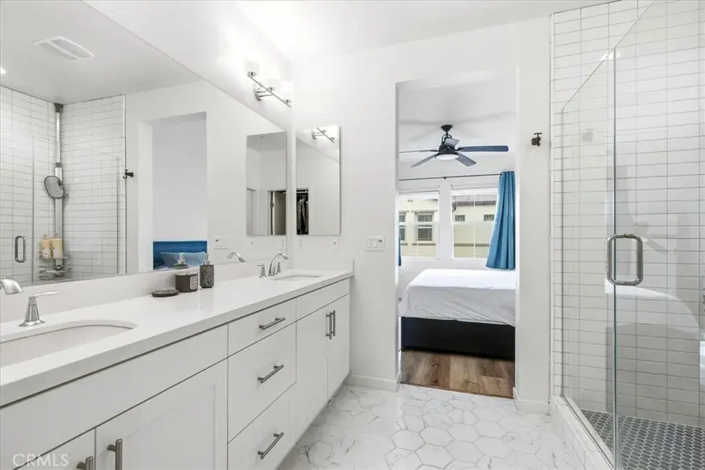 Upstairs, the third level offers two spacious secondary bedrooms and a luxurious primary suite complete with a ceiling fan, oversized walk-in closet, and spa-inspired ensuite bath featuring dual vanities, quartz counters, and a beautifully tiled walk-in shower. A conveniently located upstairs laundry room adds everyday ease.