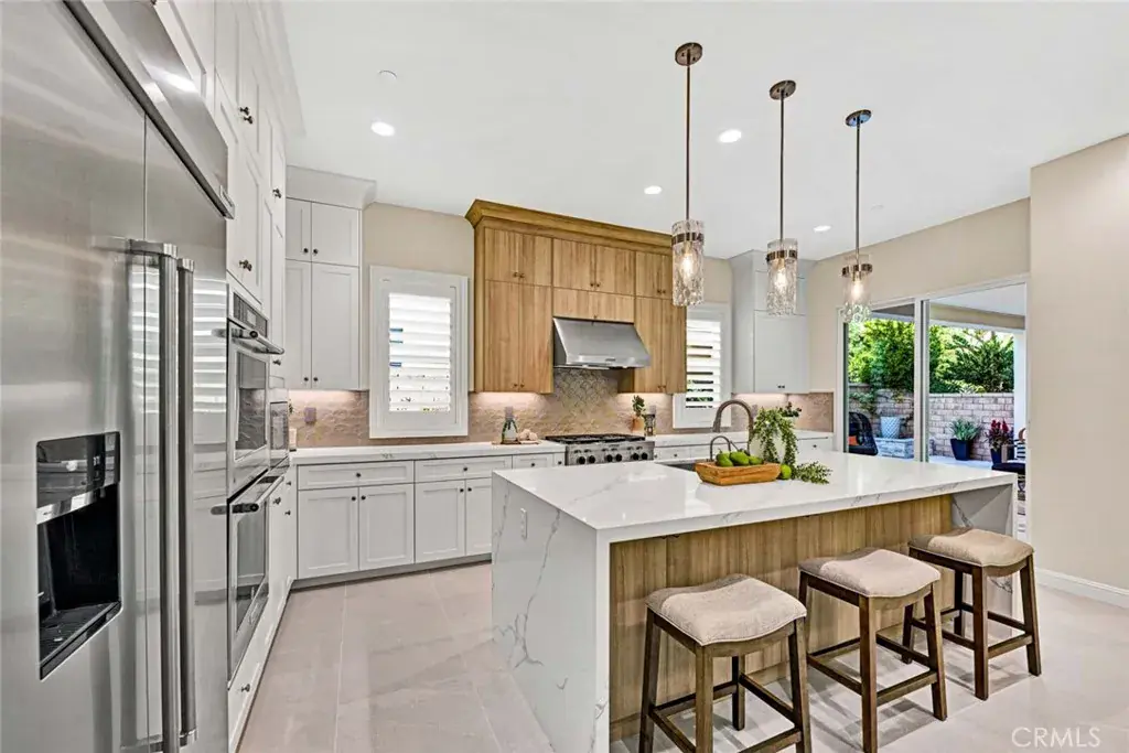 Set on one of the largest lots in the Lexington enclave, the home offers a spacious backyard ideal for relaxing or hosting gatherings in style. Inside, a chef-inspired kitchen takes center stage with a dramatic quartz waterfall island, KitchenAid stainless-steel appliances. The open-concept living area flows effortlessly and includes in-ceiling surround sound, creating an inviting atmosphere for both casual and formal entertaining.