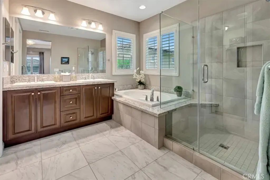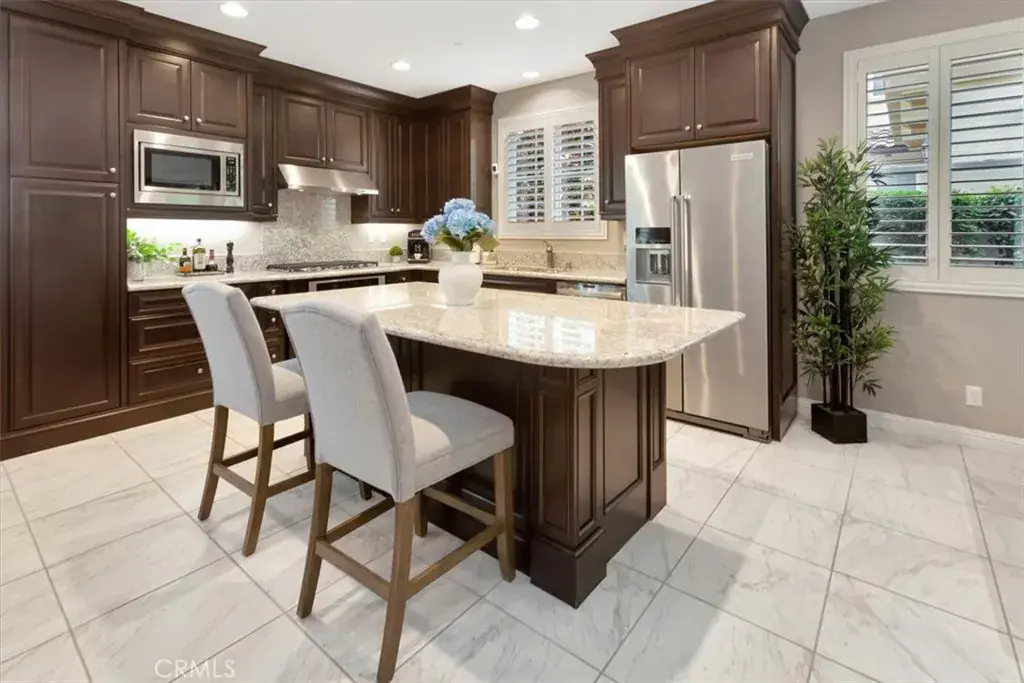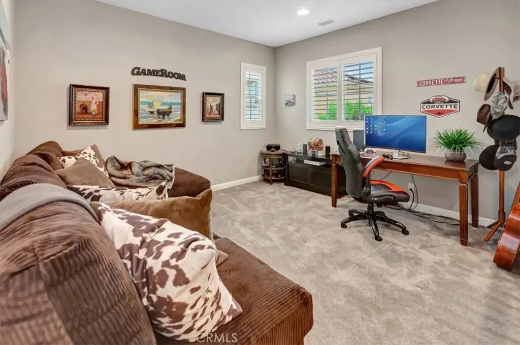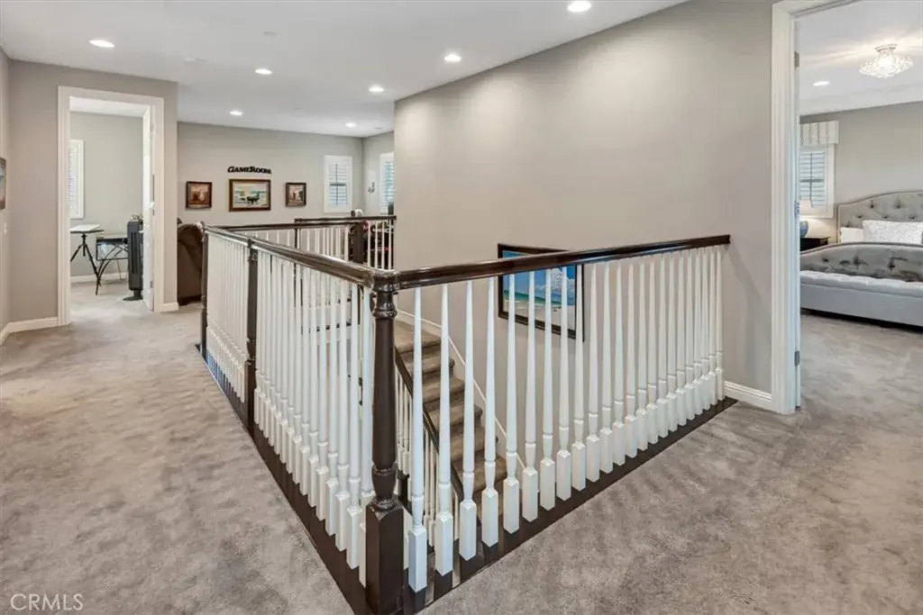 Luxury Living Awaits in the Heart of Baker Ranch! Step into this stunning Toll Brothers masterpiece, where modern sophistication meets the ultimate California lifestyle. Nestled in the coveted Baker Ranch community, this 4-bedroom, 3-bathroom home exudes style, comfort, and thoughtful upgrades throughout. From the moment you enter, you’ll be greeted by designer paint, custom tile flooring, and elegant finishes that create a warm and inviting ambiance. Every detail has been meticulously curated — from custom window treatments and plantation shutters to LED recessed lighting and ceiling fans, this home strikes the perfect balance between beauty and functionality. The open-concept floor plan seamlessly connects the chef-inspired kitchen, dining area, and living room, making entertaining effortless. The kitchen island is ideal for morning coffee or hosting friends, while the stacking sliding glass doors lead you to a true showstopper — your private California Room. This outdoor oasis features a cozy fireplace, triple-tiered fountain, lush greenery, and ambient lighting that creates a resort-style atmosphere you’ll love coming home to. Enjoy peace of mind with a security system, upgraded slim air conditioner, and irrigation system keeping your outdoor retreat pristine. Designed with versatility in mind, this home offers a full bed and bath on the main level — perfect for guests or multi-generational living — and an upstairs loft that can easily be converted into a fifth bedroom, home office, or media room. The spacious primary suite is a sanctuary of its own, with a dual vanity, soaking tub, upgraded tile shower, medicine cabinet, and designer finishes. Every bathroom in the home has been thoughtfully upgraded, and the recirculating hot water system ensures instant comfort. Convenience continues with an indoor upstairs laundry room and proximity to The Grove Clubhouse, resort-style pools, and the splash pad, offering endless opportunities for recreation and relaxation. Experience a life of elegance, comfort, and community- all in one extraordinary home. Come and enjoy all the luxury amenities that Baker Ranch has to offer including the 10 parks, 6 heated pools and spa’s (including a quiet pool and spa), the mile long hiking and biking trails, fitness stations, basketball, tennis, beach volleyball, and Bocce Ball/ Corn Hole Court, baseball and soccer fields, fire pits, outdoor fireplaces, BBQ’s, clubhouses, covered outdoor kitchen, and the Barker Ranch Dog Park!