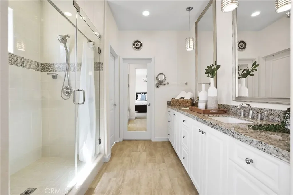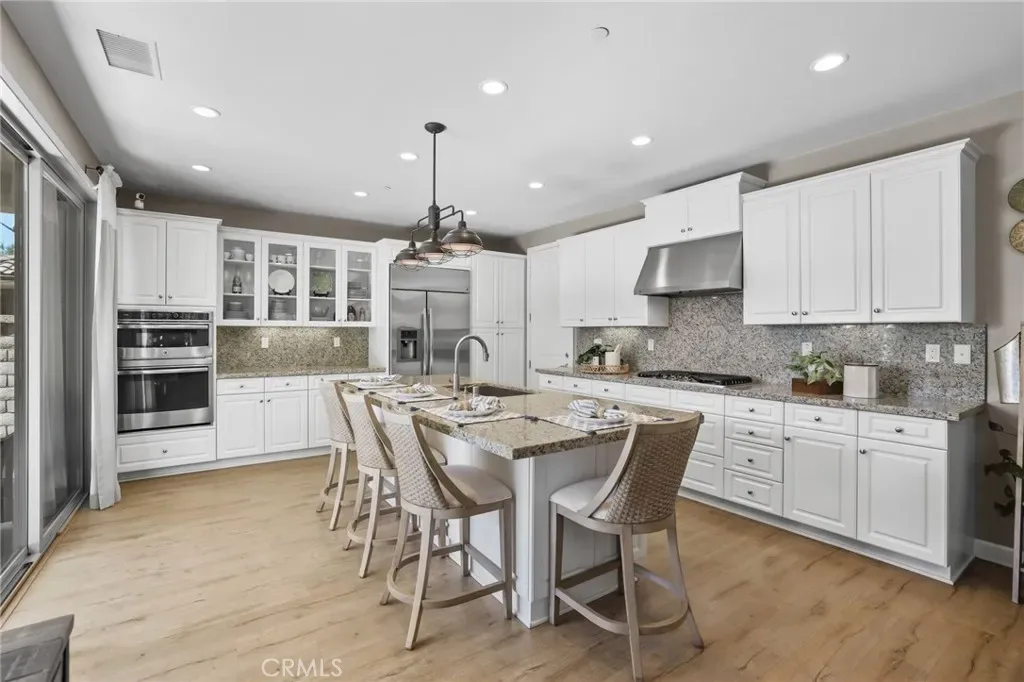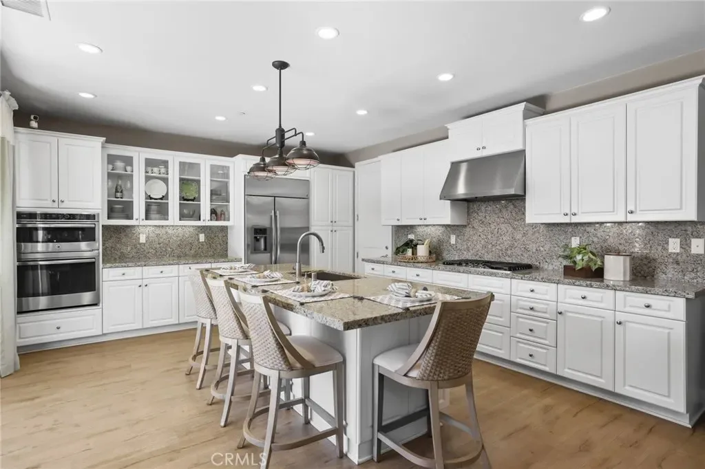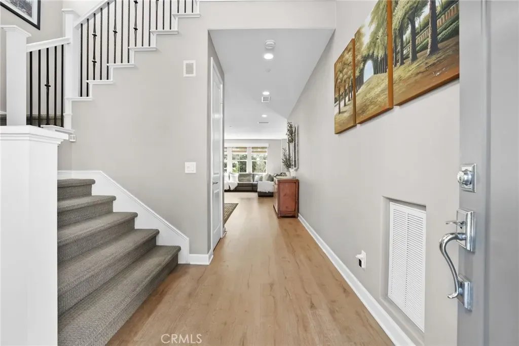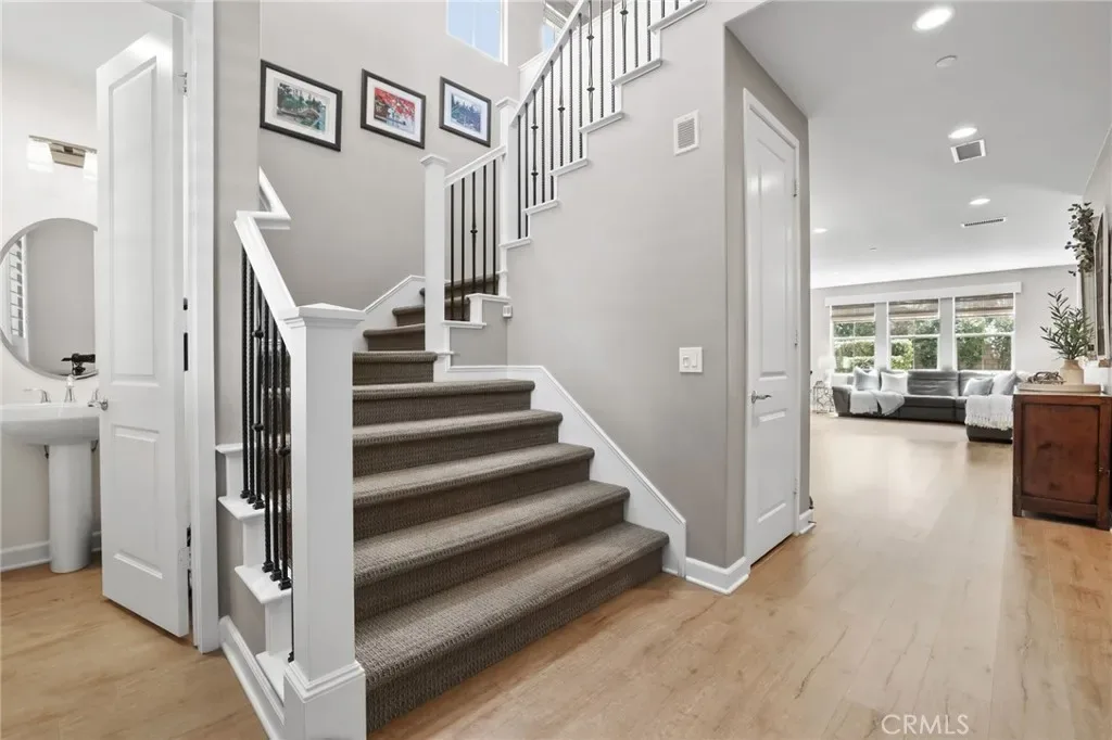 Located in the Prestigious Resort Style Community of Baker Ranch, this Elegant 3 Bed 3.5 Bath Turn-Key Residence has been Immaculately Maintained and upgraded throughout. Embrace the Indoor/Outdoor California Lifestyle. Soaring Cathedral Ceilings, Designer Paint, Upgraded Neutral Toned Wood Look Flooring and Wrought Iron Staircase greet you upon entrance and leads you to the open concept Great Room. Overlooking your Own Private Backyard Oasis, the Great Room is filled with Natural Sunlight and Spacious and accommodating for family gatherings. Continue into the Gourmet Kitchen featuring Upgraded Stainless Steel Appliances, Built-In Refrigerator, Upgraded White Cabinets, Granite Backsplash, Upgraded Sink, Designer Light Fixture and a Massive Center Island w/ Beautiful Granite Counter Tops w/Bar Seating. Continue through the Sliding Glass Panel Door outside to the Private Backyard to enjoy Lush Landscaping, Natural Fruit Trees, Custom Outdoor Lighting and Tranquil Sunsets. Embrace the Indoor/Outdoor California Lifestyle we all love! Upstairs you will find the Multi-Purpose Loft, Convenient Upstairs Laundry and 3 Bedrooms each w/attached individual bathrooms. ThePrimary Suite Retreat is Light, Bright and Spacious and leads to the fully upgraded Spa Like Primary bathroom featuring upgraded Tile Flooring, Neutral Toned Granite Counter Tops, and a Restorative Glass Walk-In Shower. Additional features for the Modern Day Buyer include Water Softener and a spacious Two Car Garage with Epoxy Flooring, Level 2 EV Charger, Built-In Steel Garage Cabinets w/ Work Bench. Ideally located just a short walk to Resort Style Amenities including Hiking Trails, Swimming Pool, Tennis Courts & Clubhouse…No Mello-Roos and Low HOA. Beautiful Home..This is the One!