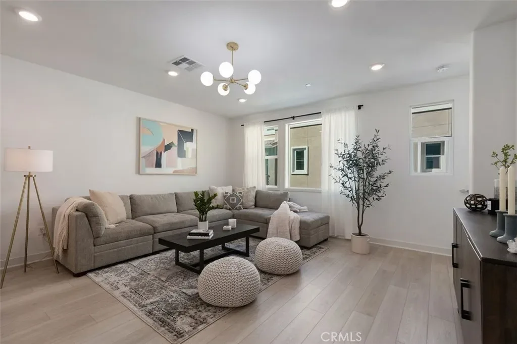 Nestled in the scenic community of Serrano Summit in Lake Forest, this stunning 3-bedroom, 3.5-bath home. Savor your sunny open kitchen featuring a large entertaining island with slab countertops, stainless steel professional series range and hood, beautiful white shaker cabinets with quiet close cabinetry, beautiful designer tile backsplash with a patio off the kitchen to enjoy your morning coffee. The spacious sunny great room features light wood flooring, high ceilings and lots of natural light. First Floor enjoys one full size bedroom and spacious full bath. Third floor features the primary spacious bedroom with gorgeous walk-in spa like shower, dual vanity sinks, walk in closet and more! The third bedroom enjoys an en-suite full bathroom. Attached 2 car garage with epoxy floors. Enjoy all resort style pool and amenities with the Summit Club Clubhouse featuring recreation rooms, outdoor BBQ’s, fireplaces with views to the Ocean, Enjoy large swimming pool, several parks and playgrounds.