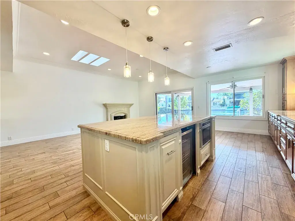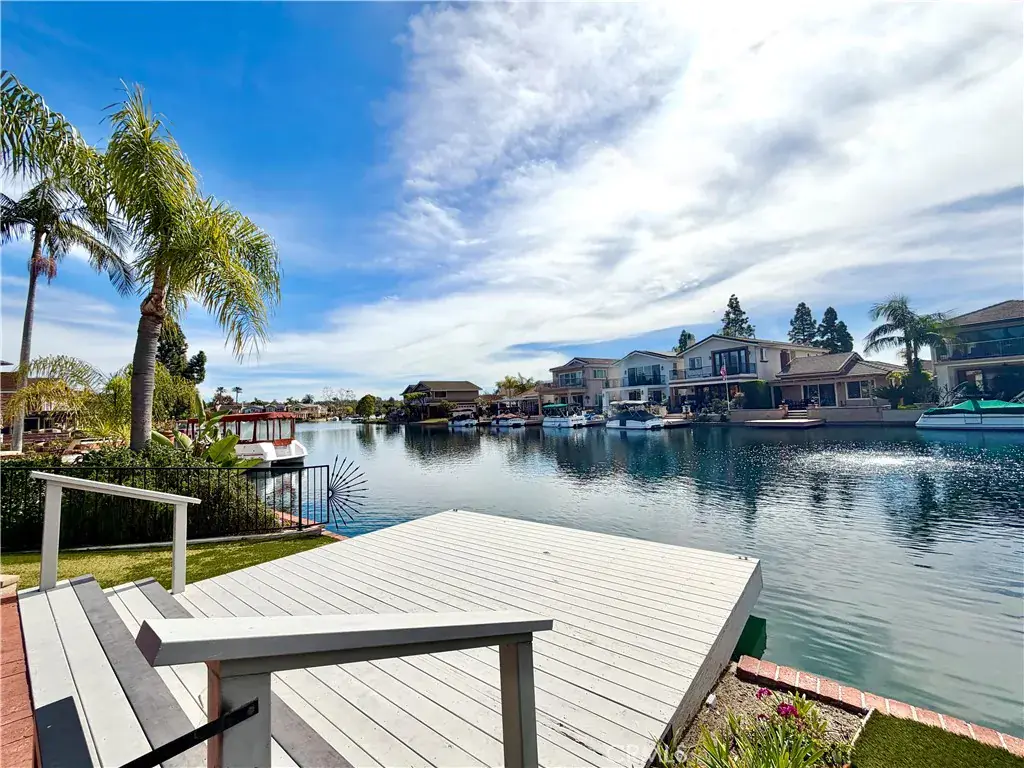 Welcome to this beautifully upgraded 3 bedroom, 2 bathroom home offering a PRIVATE DOCK and stunning LAKE VIEWS! This is the perfect blend of comfort, style, and waterfront living. From the moment you arrive, you’ll appreciate the low-maintenance landscaping, attractive curb appeal, and gated front entry that adds an extra layer of privacy and security. Inside, the home opens to a bright and inviting family room and kitchen designed for both everyday living and entertaining. Enjoy luxury flooring throughout, recessed lighting, and a spacious center island complete with a wine fridge and built-in oven. The kitchen is enhanced with elegant countertops and cabinetry that create a polished, modern feel. Down the hallway, the laundry room offers additional cabinetry for convenient storage. The secondary bathroom features updated flooring and a shower & tub combination. Both secondary bedrooms are generously sized with ample closet space and cohesive flooring that flows seamlessly throughout the home. The primary suite is thoughtfully designed with dual sinks and distinctive countertops positioned within the bedroom space, along with a beautifully tiled walk-in shower in the adjoining bath area. Two separate closets provide plenty of storage, and direct access to the exterior walkway adds convenience and functionality. The backyard is where this home truly shines — a large covered patio creates the ideal setting for relaxing or entertaining, leading down to your private dock where you can soak in breathtaking lake views and enjoy true waterfront living. Garage access is conveniently located near the front gate. Located in proximity to shopping, dining, schools, the Irvine Spectrum, and more. Schedule your private showing today this rare lakefront opportunity won’t last!