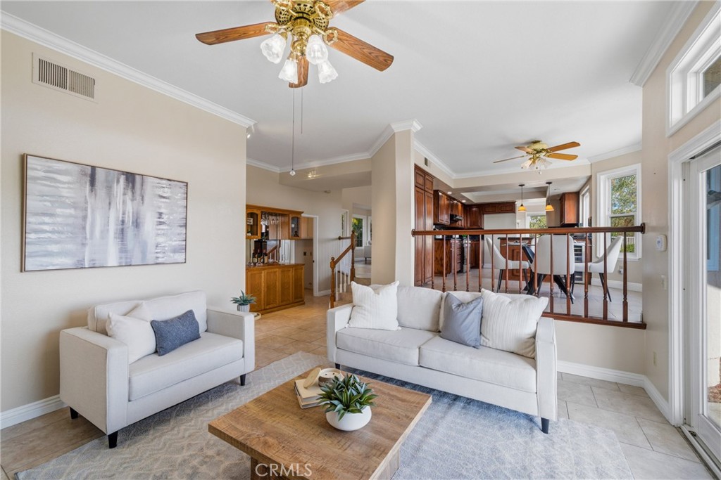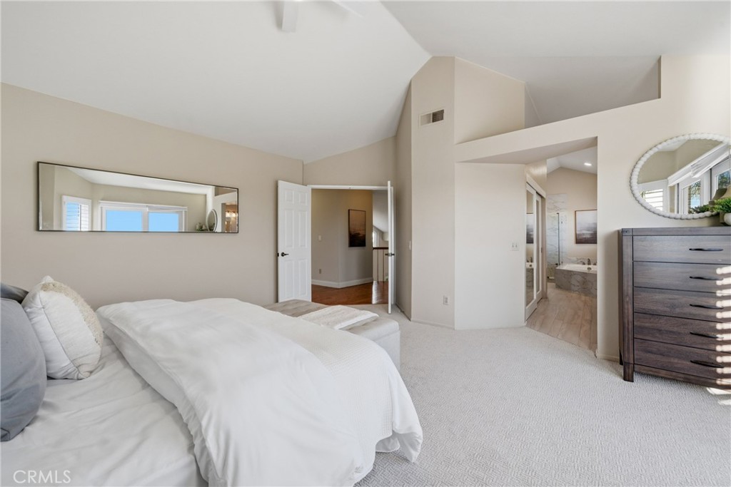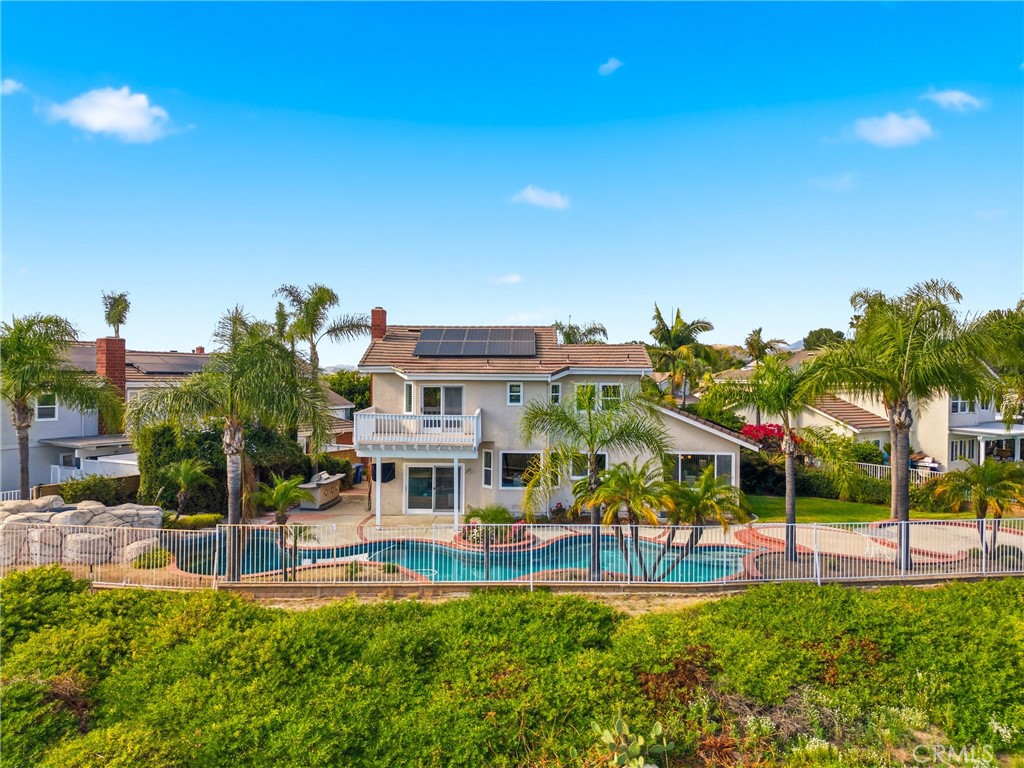 Welcome to your dream home at 25856 Windsong in Lake Forest, a truly one-of-a-kind two-story residence tucked away on a quiet cul-de-sac with breathtaking valley views, exceptional privacy, and abundant natural light throughout. This beautifully maintained home offers 4 bedrooms and 3 fully remodeled bathrooms across 2,746 square feet, situated on an expansive 8,800 square-foot pie-shaped lot. The bright and airy interior features vaulted ceilings, dual-pane windows and sliders, a formal living and dining area with bay windows, and a remodeled kitchen with a breakfast nook and outstanding views, seamlessly connecting to a separate family room with direct access to the backyard. The main level includes a downstairs bedroom, a three-quarter bathroom with walk-in shower, a dedicated laundry room with side-by-side washer and dryer, and generous garage storage. Upstairs, the primary suite impresses with vaulted ceilings, incredible light, a spacious bathroom with dual sinks, walk-in shower, separate soaking tub, and a large walk-in closet, along with two additional bedrooms and a remodeled hallway bathroom. The backyard is a private oasis featuring a large pool, spa/Jacuzzi, built-in barbecue area, and expansive grass space—perfect for entertaining or relaxing—while additional highlights include a whole house fan, solar panels to help keep energy costs down, a quiet setting away from the freeway, and a move-in-ready condition that is rarely found in a home offering this combination of views, lot size, and floor plan.