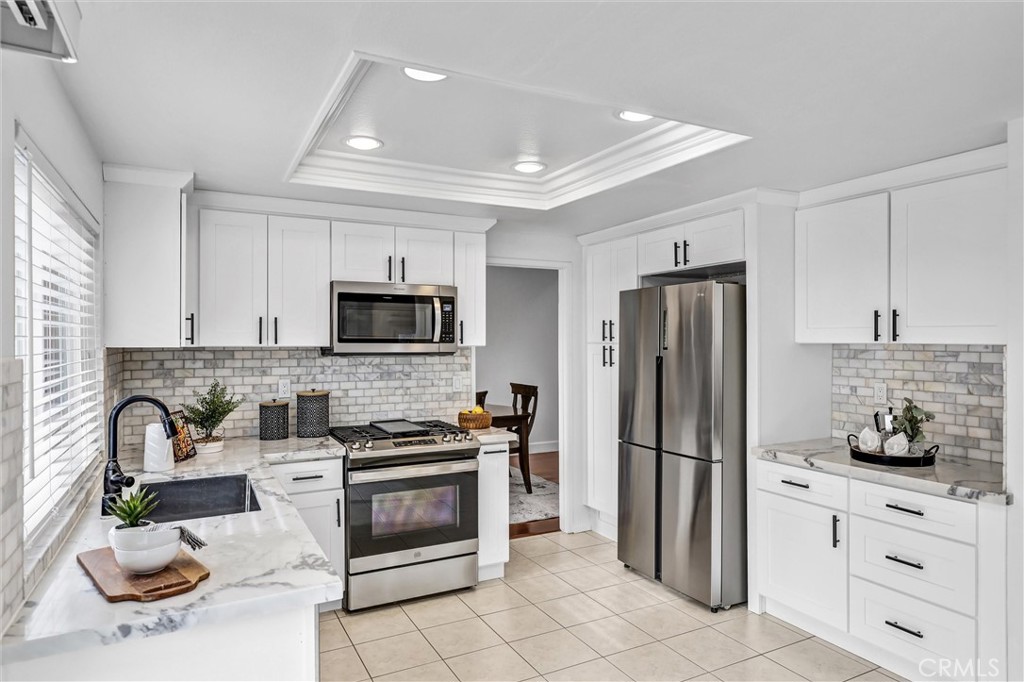Nestled in the heart of Lake Forest, this stunning, completely renovated home will take your breath away! Located on a premium corner lot of 5,300 square feet, this home features 4 upstairs bedrooms, 3 bathrooms, and 3-car attached garage along with 2,140 square feet of living space. The home is located in the Amazing grand entrance with vaulted ceilings, skylights, & the beautiful wood floors. Some of the incredible upgrades include a renovated chef’s kitchen that has upgraded white shaker cabinets, quartz counters, custom marble back splash, stainless-steel appliances, sink, recessed lights, and updated fixtures. The open floor plan connects the kitchen to the sunken living room, formal dining room, & upgraded bar area that is perfect for entertaining. Cozy fireplace. Scraped ceilings throughout with recessed lighting. Inside laundry with closet. All baths are amazing with New white shaker cabinets, quartz counter tops, tile floors, mirrors, toilets, & custom showers with updated fixtures. Huge master suite with sliding glass door that has access to oversized deck. Master also has vaulted ceilings and a ceiling fan. Master bath has double sinks & custom marble on floors & shower. All bedrooms have newer plush carpet. Other upgrades include dual pane windows, newer HVAC system, paid off Solar, insulated garage doors, and tons of cabinets in garage for storage. Walking distance to La Madera Elementary School and El Toro High. You’ll also enjoy the benefits of being a member of the Sun and Sail Club which includes access to pools, spas, exercise and workout rooms, tennis, basketball and volleyball courts, a playground area, a clubhouse and much more! A great place to call home!