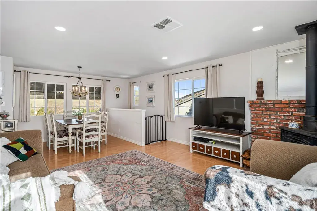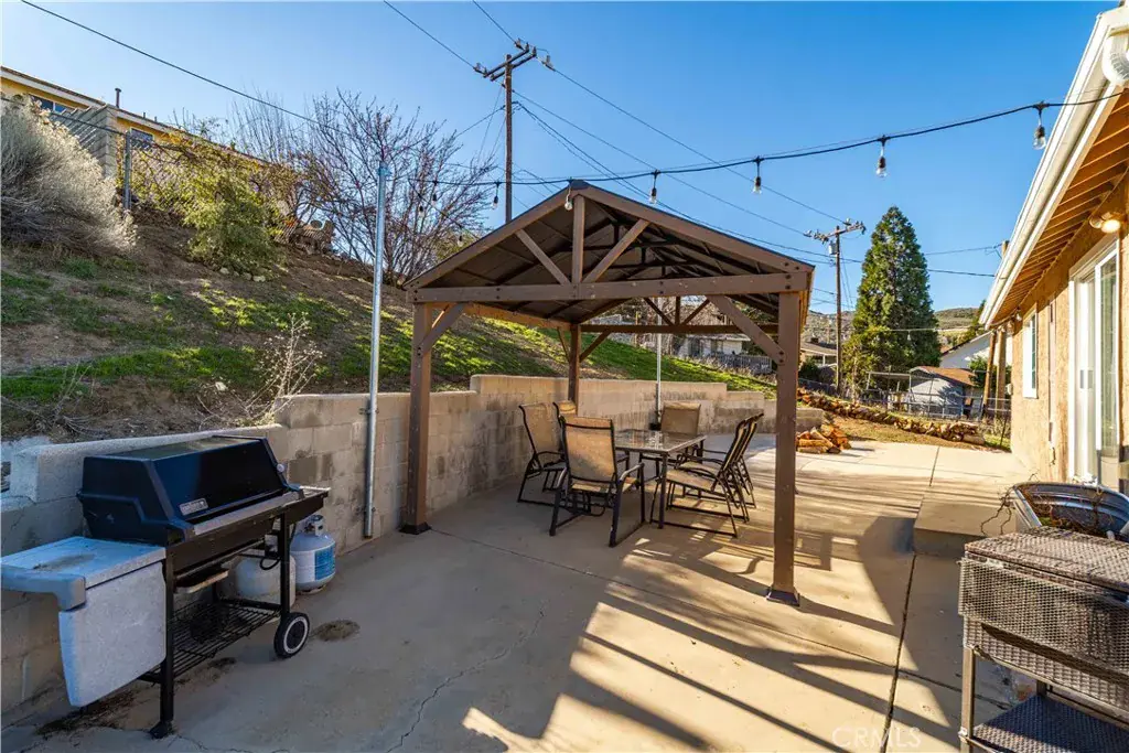 Lake Elizabeth Home nestled on a peaceful cul-de-sac with beautiful lake and mountain views, this thoughtfully updated property offers approximately 1,483 sq. ft. of flexible living space and unforgettable sunsets. Located just north of Santa Clarita and west of the Antelope Valley, this charming country-style community provides a quiet escape with convenient access to nearby cities. The main living area is located on the upper level and features the living room, kitchen, two bedrooms, and two full bathrooms. The inviting living room includes laminate flooring, a freestanding woodstove on a brick hearth, and sliding doors that open to a large patio for seamless indoor-outdoor living. The bright kitchen offers stainless steel appliances, tile flooring, recessed lighting, and a perfectly placed window framing scenic mountain views. The upper-level primary bedroom includes an en-suite bath, separate vanity area, linen closet, and mirrored wardrobe doors, while the second bedroom is filled with natural light and beautiful views. Downstairs, the expansive flex room with tile flooring provides exceptional versatility, ideal as a primary suite, guest quarters, playroom, music or craft studio, or private retreat for teens or extended family, with direct access to the attached two-car garage. The fully fenced and paved backyard is designed for enjoyment and privacy, featuring a newly added gazebo, a chicken coop, and plenty of space to entertain or relax while taking in the peaceful surroundings. Recent upgrades include a newer roof, windows, HVAC system, furnace, septic tank, interior and exterior paint, updated light fixtures, recessed kitchen lighting, and new interior door hardware. Stunning views, a flexible floorplan, quiet cul-de-sac location, and exceptional value. This is the one you’ve been waiting for.
