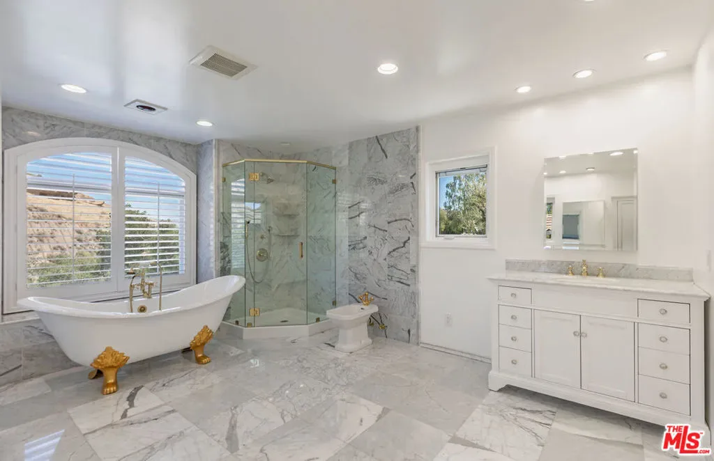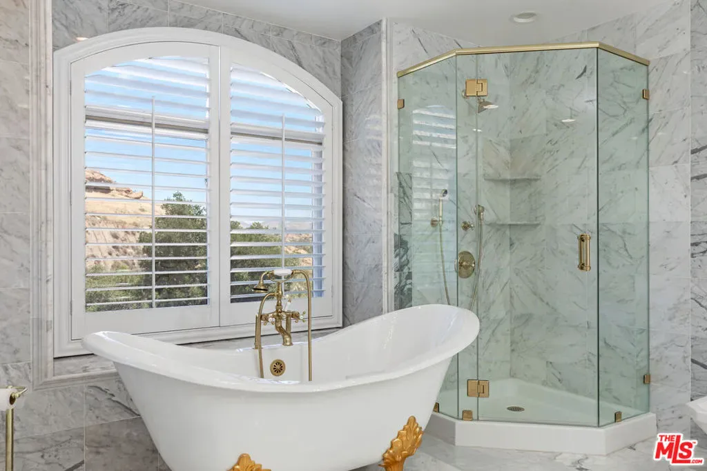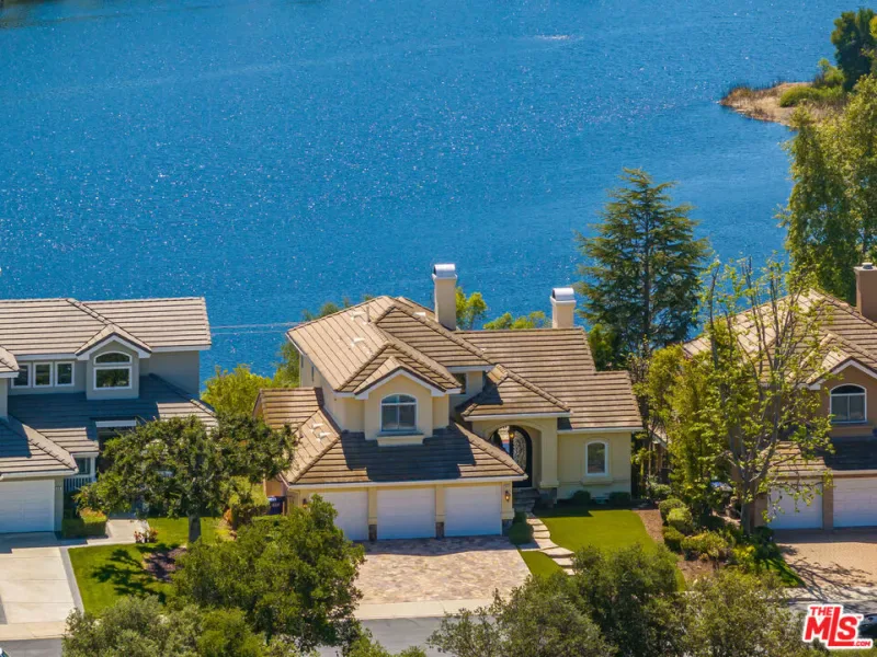 Stunning panoramic views of Lake Sherwood and the surrounding mountains from this beautifully updated home in the prestigious gated North Shore neighborhood of Sherwood. Recently refreshed with new landscaping! South-facing views from every level, vaulted ceilings, and abundant natural light from skylights. Features include flagstone driveway and walkway, dual-paned Pella windows, premium appliances, custom arched glass and wrought iron doors, marble floors in entry/kitchen/dining, and French doors. The floor plan offers 4 bedrooms, 3.5 baths, home office, open living/kitchen, formal dining, upstairs primary suite, and downstairs bedrooms plus family roomall with views. Highlights: 3-car garage and main-floor laundry with sink. The primary suite has coffered ceilings, sitting area with views, large walk-in closet, and remodeled bath with dual sinks, separate tub, marble shower, bidet, and marble finishes.Backyard features an oversized refreshed spa, new grass, and covered patio. Main-floor laundry with original downstairs setup for guests. Ownership includes lake privileges, security patrols, and private fishing on Lake Sherwood.A must-see for incredible views in an exclusive neighborhood!