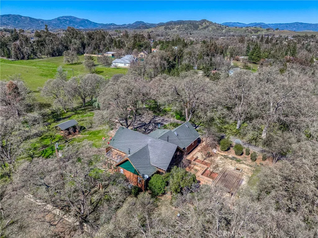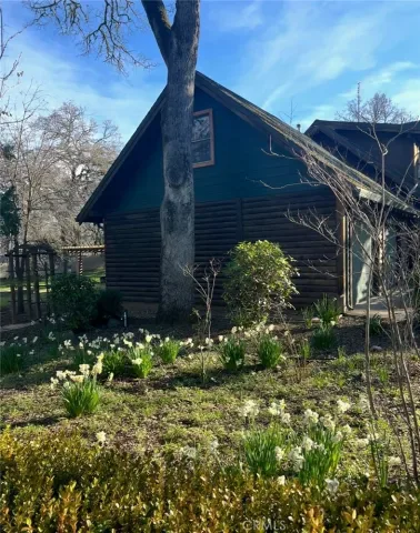 Enchanting, one-of-a-kind log home on 2.62 acres in one of North Lakeport’s most desirable neighborhoods. Tucked away at the end of a quiet cul-de-sac, this special property welcomes you through a gated entry and down a paved driveway that opens to a circular driveway in front of the home, creating a beautiful arrival surrounded by mature oak trees. This unique 2,880 square foot home offers 3 bedrooms and 2.5 bathrooms, featuring stunning vaulted wood ceilings, cozy fireplaces, and warm rustic character throughout. The remodeled kitchen showcases beautiful concrete countertops and sits next to the formal dining room, making it ideal for both everyday living and entertaining. The home has seen many upgrades over the years, too many to list. Just off the dining room is a bright sun-room that opens directly to the picturesque backyard. The spacious layout includes two bonus rooms, one located inside the home and another large bonus room above the two-car garage, with a separate entrance, offering endless possibilities for a second unit, gym, or game room. Outdoor living is just as impressive with multiple covered decks and balconies, plus a patio area designed for gatherings featuring custom park-style stone bench seating, a gazebo, and an outdoor fire-pit that creates a truly magical setting. There are also two additional decks down in the yard, perfect for entertaining and enjoying the peaceful natural surroundings. The driveway offers abundant parking with space for 10 or more vehicles, plus plenty of room for RV and boat parking. The wooded park like setting also provides the option to place an RV further back on the property for added privacy, creating a magical camping like retreat right in your own backyard. The fully fenced property is well maintained and offers plenty of space for animals or horses, complete with stalls and multiple fenced areas. A major bonus is that the property features both a private well and public water service. A detached metal storage building with a roll-up door provides additional storage for equipment, tools, or another vehicle. With its unique charm and expansive layout, this property offers incredible potential as a high-end Airbnb, a stunning venue for private events, or a peaceful vacation home retreat. Located just minutes from town, shopping, restaurants, and the hospital, this property offers the perfect balance of privacy, space, and convenience. A rare opportunity to own a truly special North Lakeport home.