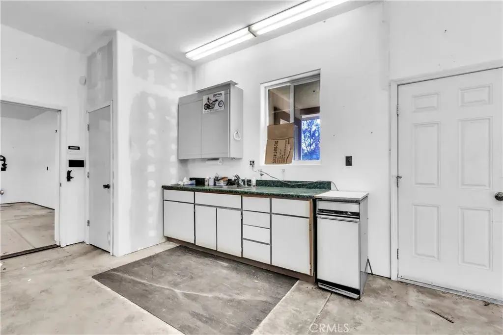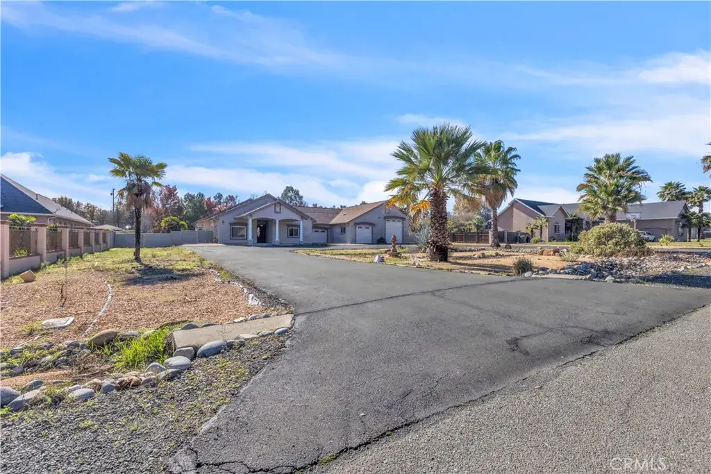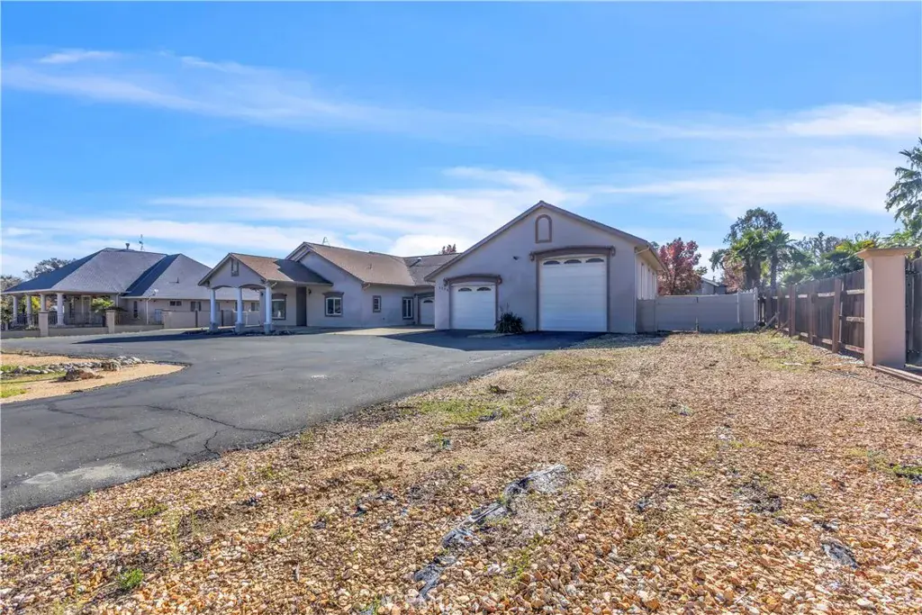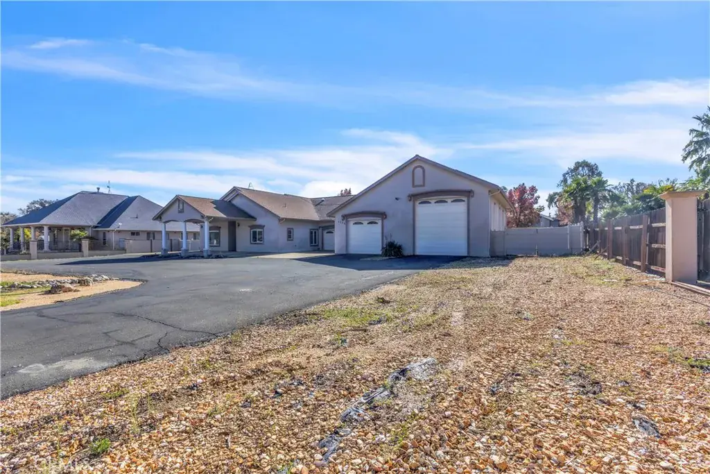 Welcome to this 3 bedroom, 3 bath home nestled on just under an acre of land. Situated toward the front of the center of the property, this home offers a large, fully fenced backyard with mature trees, providing a blank slate for your imagination. Step inside to discover beautiful tile floors throughout and a chef;s kitchen equipped with granite countertops, a garbage compactor, a countertop gas range, a convection oven, a utility sink with a pot filler and a breakfast counter. The kitchen opens up to a very large family room, which features a cozy gas-fired fireplace. The large living room boasts several windows allowing for lots of natural light and a sink and vanity that can be added onto for a bar for entertaining. The primary suite is a true retreat, featuring separate access to the back yard. The spa-like primary bath includes a jetted tub and a walk-in shower with glass tile. Off the primary suite is an additional room that can serve as office/nursery/craft room/bedroom…you pick! For those who love to work on projects or need additional storage, the property features a 2 car garage with its own door, adjacent to a larger2-3 bay garage with an RV opening. The space is perfect for a workshop, with lots of shelving, cabinetry, toilet, mini kitchen and ample counter space. Additionally, there is a separate laundry room with washer and dryer, sink, folding counter and fold out ironing board. The front yard has a convenient covered carport, making unloading a breeze.There is a non-functioning boiler that heats the water and radiant floors. Don’t miss out on this incredible property that combines comfort, functionality, and endless possibilities!