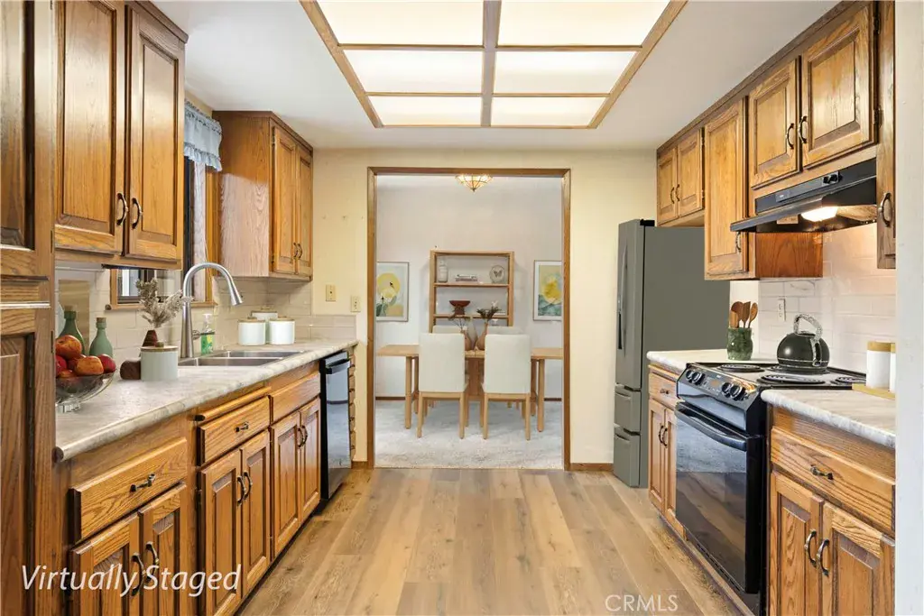 THIS CHARMING 4-bedroom, 2-bath home perfectly blends comfort and convenience, offering an ideal setting for families seeking proximity to schools. FIRST TIME ON THE MARKET for this well maintained family home boasting a spacious floor plan that’s perfect for entertaining, and everyday living. Upon entering there is a comfortably sized living room featuring a woodstove insert, creating a warm, inviting atmosphere. A formal dining area with a large window looking out on the backyard sits just before the kitchen entry. The galley kitchen offers new luxury vinyl flooring, tile backsplash, ample cabinet, and counter space. Just past the kitchen is a large area that can be used as a family room or another dining area with an extra large sliding glass door leading out to the generously sized patio with a built in barbeque. The fully fenced backyard is thoughtfully landscaped providing the perfect backdrop for barbeques, family gatherings, and outdoor activities. The primary suite includes double closets, a sliding glass door to the backyard, and an en-suite bathroom with a large walk-in shower. Three additional bedrooms provide plenty of space for family, guests, or a home office. Enjoy lakefront beach rights for a nominal annual fee. Located within walking distance to Lakeport schools, nearby shopping, and the lake make this neighborhood very sought after!