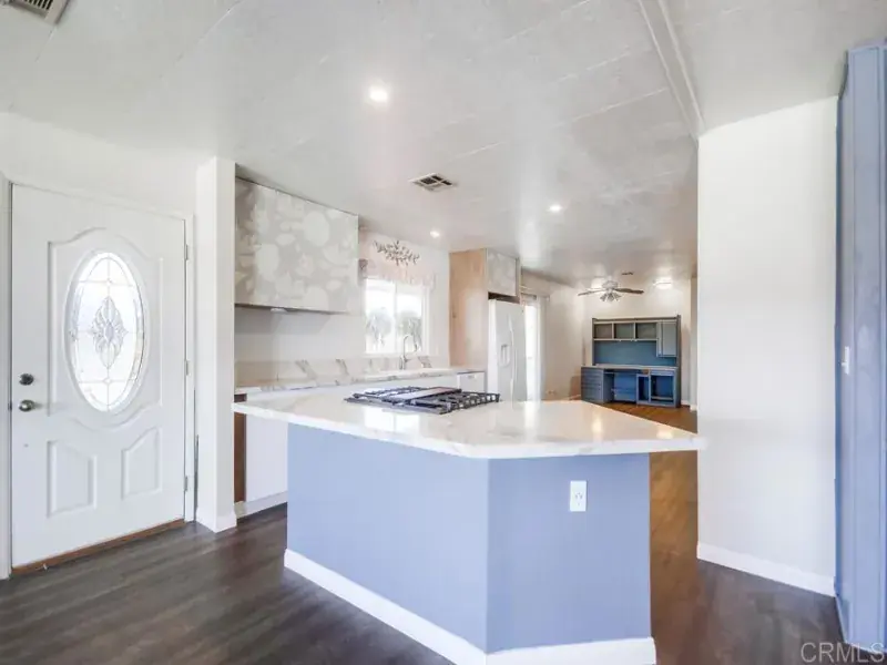 Take advantage of this incredible opportunity to own a view home in the highly sought-after Lake Jennings Park Estates, a gated 55+ community known for its scenic setting and resort-style amenities. This well-maintained 2-bedroom, 2-bath home offers exceptional living space, featuring a dining area, spacious living room, separate family room, and a dedicated office area, providing flexibility. Enjoy stunning lake and mountain views from large picture windows that flood the home with natural light, while a cozy corner pellet stove adds warmth and charm on cooler evenings. The inviting kitchen includes an island with a gas cooktop and bar, bright white cabinetry, and generous counter space, perfect for entertaining. A sliding glass door opens to the covered front porch and expansive patio area, creating a private outdoor retreat ideal for relaxing or hosting guests. Additional highlights include low-maintenance landscaping, excellent privacy, and a large storage shed suitable for a workshop or hobby space. Residents enjoy a heated pool and spa, clubhouse with full kitchen and fireplace, library, game and card rooms, dog park, and RV parking, all with a low monthly HOA and no space rent. Conveniently located near shopping, dining, and freeway access, this home offers space, views, and lifestyle at an exceptional value in one of Lakeside’s most desirable 55+ communities.