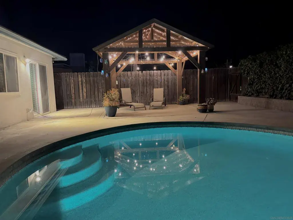 MOTIVATED SELLER! Great location! Owned Solar–no monthly electric bills! Sparkling saltwater Pool–recently replastered with solar heat and slide. Open-concept living room, hugely spacious and ideal for gatherings. Granite kitchen counter tops with plenty of cabinets. High ceilings for a bright, open feel with plenty of natural light. Spacious master suite features a huge walk-in closet, private bathroom. 3 more spacious bedrooms and 3 full bathrooms. Newer A/C unit. Finished Garage, new concrete flooring, stunning wood ceiling, and epoxy finish, perfect as a family room or bonus space. Newer concrete driveway. Low maintenance yard. Enclosed front patio – perfect space to unwind. Charming gazebo, equipped with lighting for relaxing evenings or entertaining guests. Private Road Access – Peaceful and secluded. Perfectly situated just minutes from downtown Lakeside, the rodeo grounds, Lindo Lake, and more! Don’t miss your chance to own this gem in the heart of Lakeside!