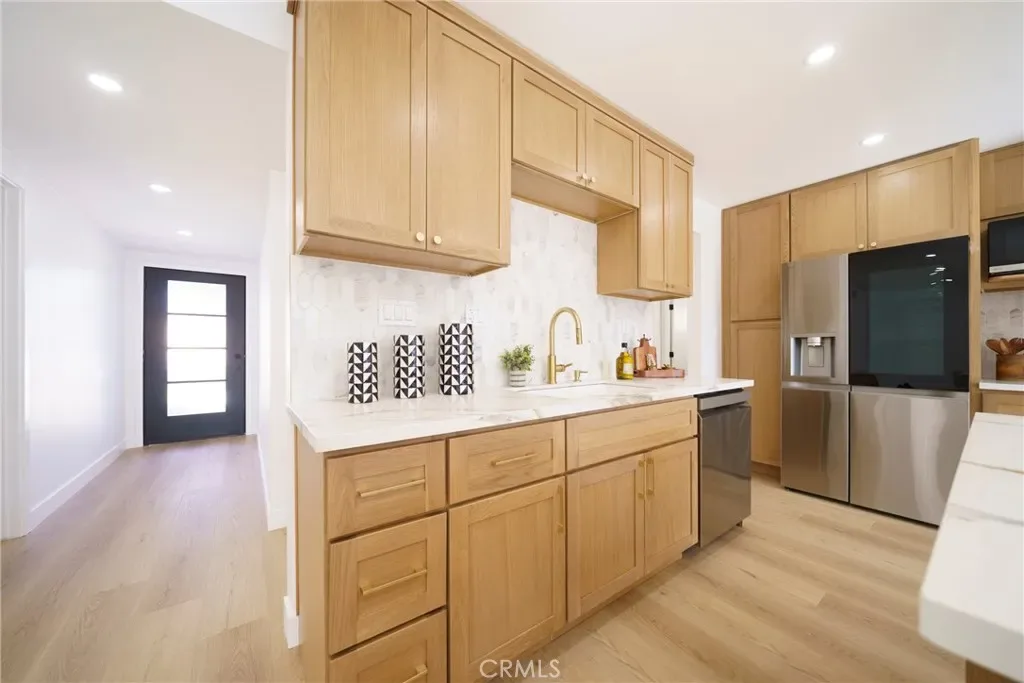 Welcome to 20828 Nectar Ave a beautifully upgraded, move-in ready home in the highly sought-after city of Lakewood. This inviting single-family residence offers the perfect blend of modern design and everyday comfort, with thoughtful improvements throughout.The open-concept floor plan is ideal for today’s lifestyle, featuring a spacious kitchen with a center island that flows effortlessly into the living and dining areas perfect for entertaining or relaxed daily living. The kitchen is highlighted by a stunning marble backsplash, brand-new stainless steel appliances, and sleek, contemporary finishes.Additional upgrades include remodeled bathrooms, updated flooring, fresh interior paint, recessed LED lighting, central A/C, dual-pane windows, and new sliding glass doors that enhances both efficiency and natural light. The property also features a wide driveway, attached 2-car garage with direct access, also low-maintenance landscaping for added convenience.Ideally situated just moments from local parks like Rynerson park,Home run Dog Park, plenty dining, shopping, and everyday essentials, with easy access to major freeways for a smooth commute. Located within the highly acclaimed ABC Unified School District, this home presents a rare turnkey opportunity in one of Lakewood’s most desirable neighborhoods.
