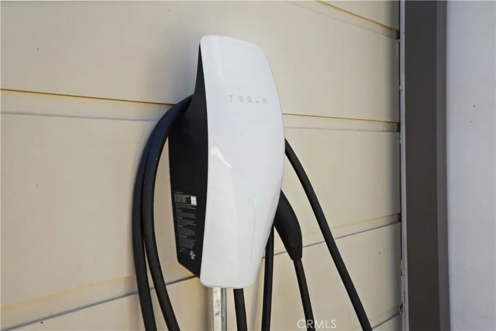A Tesla Level 2 wall charger is provided at the dedicated on-site parking space.
