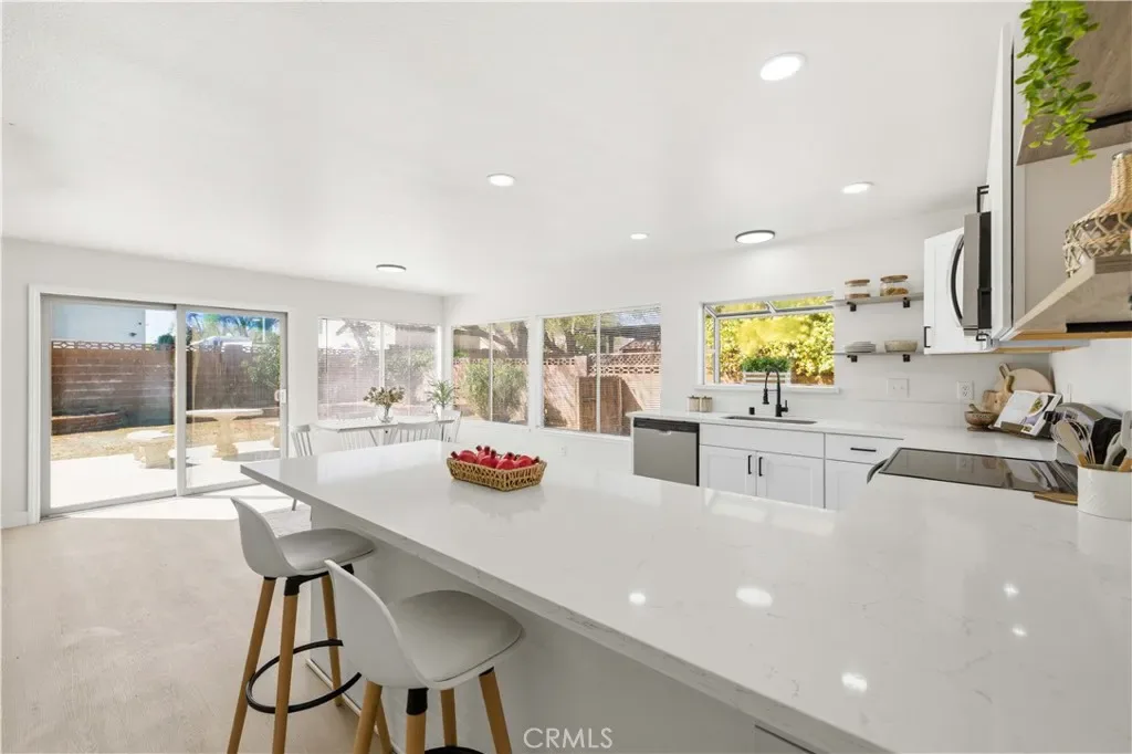 Remodeled 5-bedroom home with exceptional versatility and modern upgrades throughout. Featuring two spacious primary suites–one conveniently located downstairs and one upstairs–this layout is ideal for multi-generational living or added privacy. A flexible bonus space offers endless possibilities for a home office, gym, or media room. The massive, brand-new kitchen is the centerpiece of the home, showcasing updated finishes, ample cabinetry, and generous counter space–perfect for both everyday living and entertaining. Additional highlights include fully PAID SOLAR for energy efficiency and block walls providing privacy and low maintenance.
