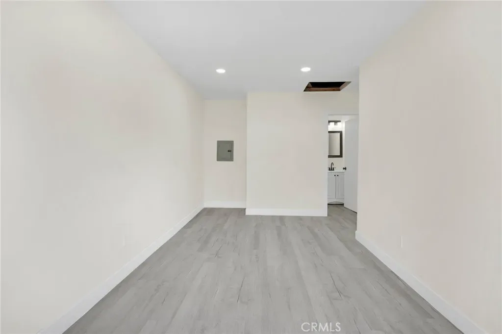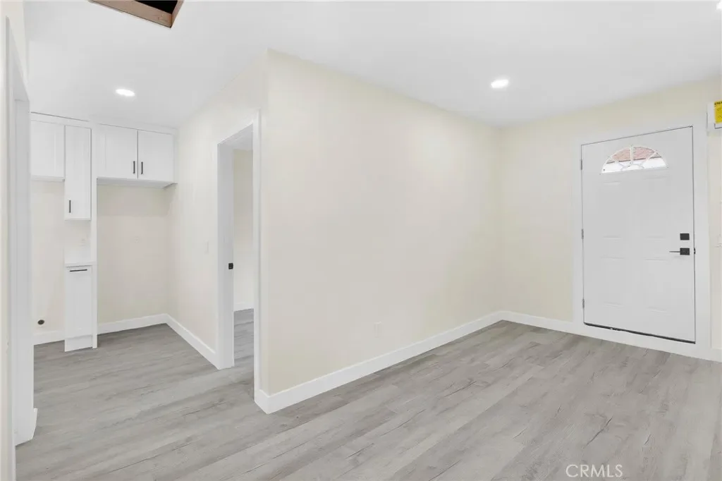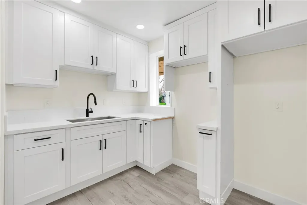Beautifully updated property featuring a 3-bedroom, 1-bathroom main home plus an ADU with 1 bedroom, 1 bathroom, offering flexible living space for extended family, guests, rental potential, or a private home office setup. The main home features a bright, open layout with fresh finishes, recessed lighting, updated flooring, and a spacious living area with sliding-door access to the backyard. The kitchen has been tastefully remodeled with white shaker cabinets, modern countertops, and black hardware/fixtures for a clean, contemporary feel. Both bathrooms have been refreshed, and the bedrooms offer comfortable, functional space. Outside, enjoy a large backyard with a mature tree, a covered patio, and plenty of room to customize, entertain, or expand possibilities. Convenient driveway parking. A great opportunity for an owner-occupant or investor looking for versatility and value.