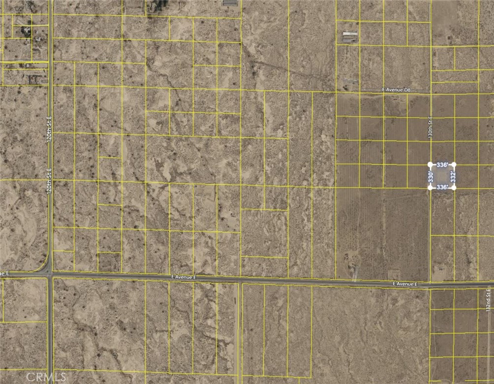Great land parcel with frontage on 130th St E. It’s just north of paved Avenue E. There are power lines running along Avenue E. Avenue E is a major street that can take you to Sierra Hwy or the 14 Freeway. Just to the north of this property, at 120th St and Ave B, is the entrance of Edwards AFB. There are a number of homes and ranches in the area. This property provides a great opportunity to own a land parcel with street frontage, very close to a paved street that has power lines, for a very low price. This may be a great location to camp, go off-roading, install a mobile home, build a house, or start a small farm. This property is secluded while also being accessible. Great opportunity, don’t miss out!