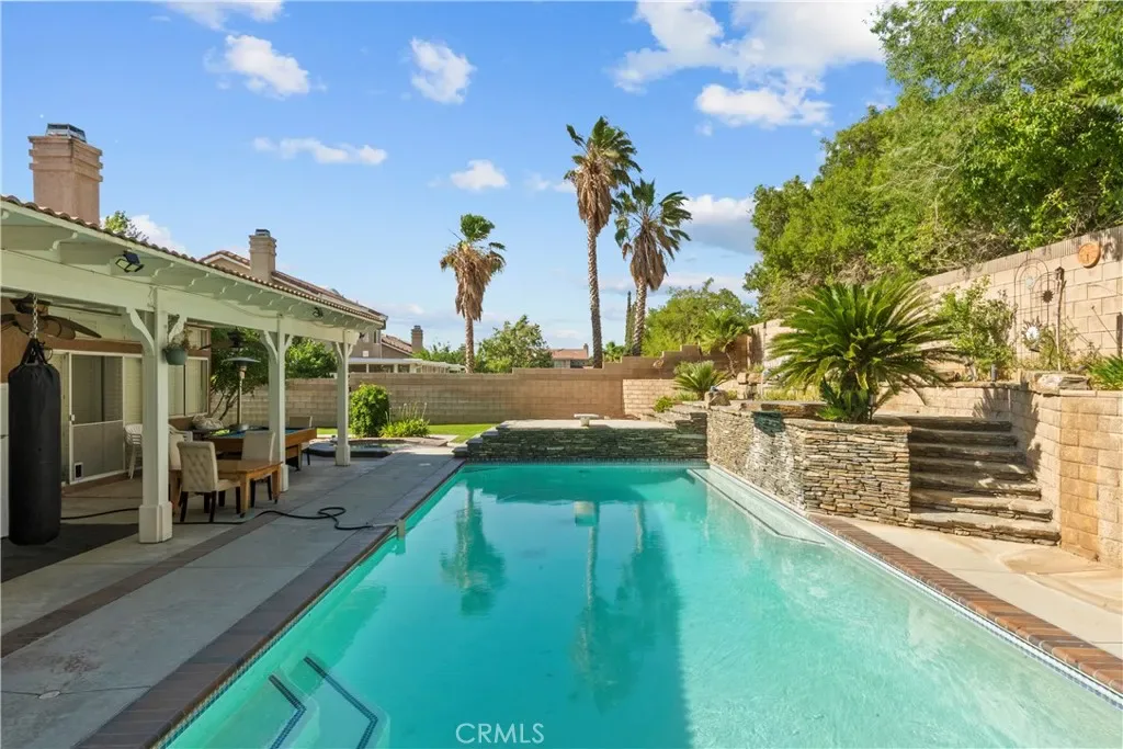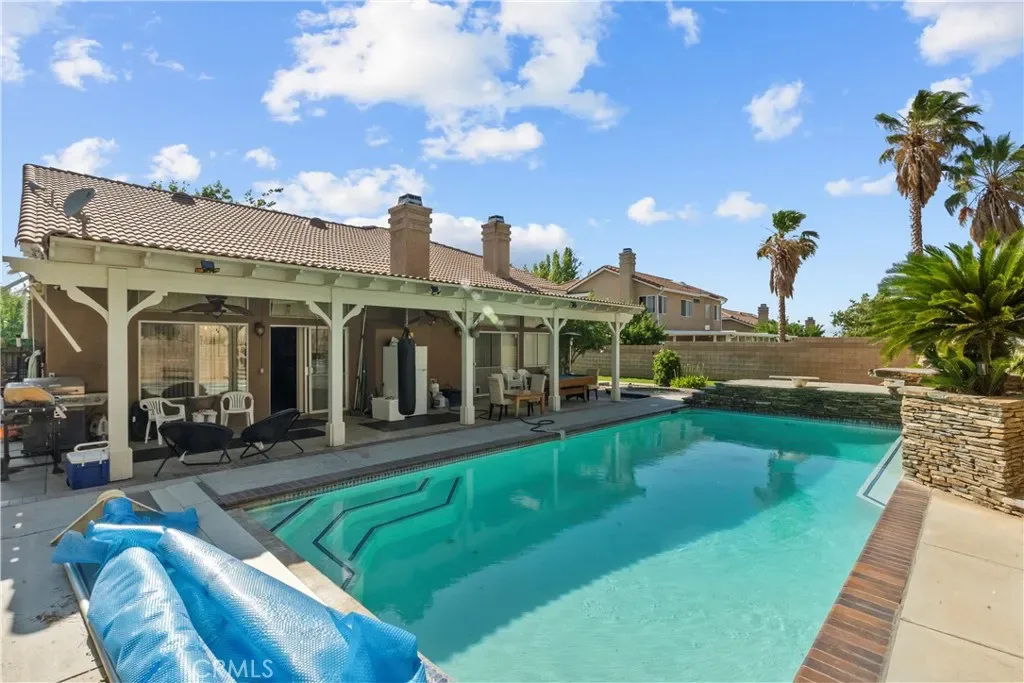 Located on a quiet cul-de-sac in Quartz Hill, this spacious pool home offers plenty of room to spread out and enjoy, with a layout ideal for everyday living and entertaining. Featuring four bedrooms plus a downstairs office that can easily serve as a fifth bedroom, the floor plan is both functional and versatile. The home welcomes you with high ceilings and a natural flow into the formal living and dining areas, great for hosting friends and family. The open kitchen offers ample cabinet space, a center island with bar seating, and opens to a comfortable family room complete with a fireplace and built-in media center. The primary suite downstairs offers privacy and convenience, with direct backyard access, plantation shutters, dual closets, and a dual-sided fireplace. The en-suite bath includes a therapy tub, double sinks, and a stone-tiled shower. The backyard was made for relaxing and making memories, featuring a pool, spa, diving board, waterfall, and a large, covered patio with ceiling fans and lighting for warm summer nights.With no HOA or Mello-Roos, this is a solid Westside Quartz Hill home with plenty to offer.