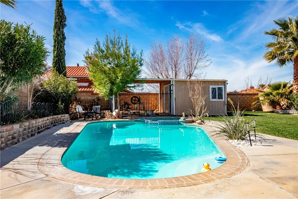 This recently renovated 4-bedroom, 3-bathroom residence with a 3 car garage and paved RV access offers 2,652 square feet of thoughtfully designed living space in the Quartz Hill neighborhood. This home features a newer kitchen with modern finishes. The open floorplan flows seamlessly into a spacious family room, creating an ideal setting for both everyday living and entertainment. Step outside to a custom-designed pool and spa surrounded by a large and landscaped backyard with mature fruit trees including pomegranate, apricot, fig, and grape vines.
