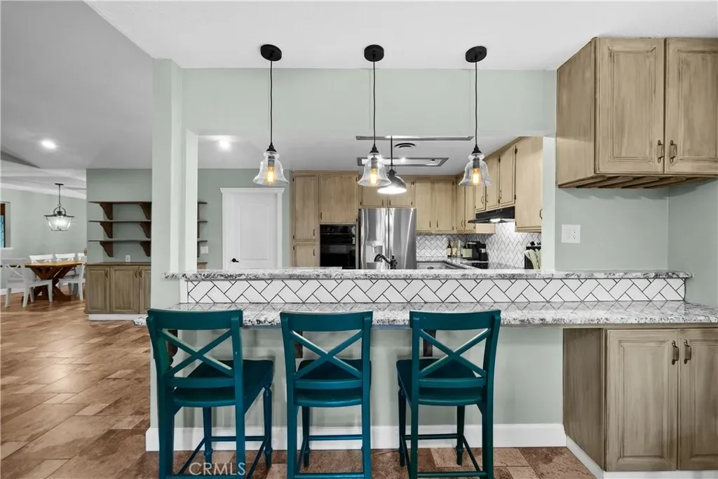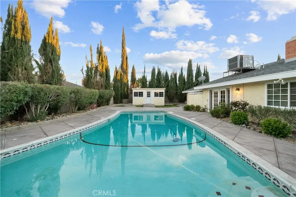 Located in the highly desirable College Terrace neighborhood, this beautifully upgraded single-story pool home offers one of the most sought-after floorplans in the area, blending comfort, functionality, and timeless design. From the private gated front porch to the expansive living spaces, this 3-bedroom residence features wide 46-inch hallways with potential for handicap accessibility, dual-pane windows, recessed lighting, two-panel interior doors, modern baseboards, and trim. The open-concept kitchen is designed for both everyday living and entertaining with double ovens, refinished cabinetry, granite countertops, custom tile backsplash, breakfast bar seating, and seamless flow into the dining area and family room with vaulted ceilings, built-ins, and fireplace, while a separate formal living room with brick accent fireplace and spacious formal dining room provide additional entertaining space. The primary suite offers direct backyard access through French doors and a beautifully remodeled en-suite bathroom with dual sinks and upgraded shower. Step outside to a private entertainer’s yard featuring a sparkling pool and spa, removable pool safety fencing, concrete patio, outdoor pool bathroom, raised garden bed, storage shed, and a detached “man cave” retreat complete with bar, booth seating, and dartboard. Additional highlights include recently installed leased solar panels, a long driveway with space for a 27-foot RV, boat, or trailer, and a white vinyl fenced front yard with mature landscaping. This well-maintained pool home delivers true indoor-outdoor California living with energy efficiency, RV parking, and move-in-ready upgrades in one of the area’s most established neighborhoods.