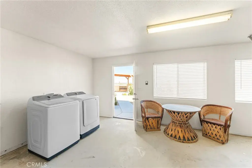 Security is also taken care of with a solar-powered gate leading to a 2-car garage equipped with laundry facilities. The fully fenced yard ensures both safety and the potential for future development.