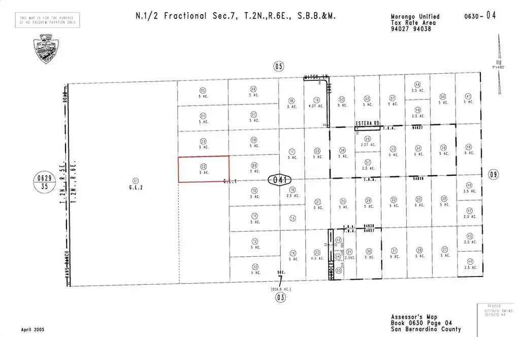 No address has yet been assigned to this property. This is a 5-acre lot in Landers. It is one lot removed (south) from Pine Avenue, a dirt road running east and west about 330’ to the north of the property. (NOTE: Google Maps calls this “Jackrabbit Rd”; however, the water company says it’s “Pine St”.) There are access and utility easements to nearly all properties in the area, and this is no exception. There is no actual access road that comes from Pine moving south to the property. However, you can drive to the property by following a streambed south from Pine 330’ to the northeast corner of the lot. There is fairly easy access to electricity here, as SoCal Edison lines run east and west along the south line of Pine Avenue. That puts them about 330’ north of the property, so— close by. Water is available on Pine Ave, and the Bighorn-Desert View Water Agency covers the area. They say they would install a meter for this property at Pine, but plumbing to the lot itself would be the responsibility of whoever was the owner at that time. Any Buyer is urged to contact the water company for specifics as to the actual cost of meter installation, as well as for plumbing the 330′ south from Pine to the property itself. Whether you’re looking to build your “desert retreat” or a full-time home, this would be a great spot to consider. It’s reasonably close to Yucca Valley and all the shopping and service centers there, and yet you do feel like you’re in the middle of nowhere. This would be a great spot to consider, especially considering the ready availability of utilities. Come check it out!